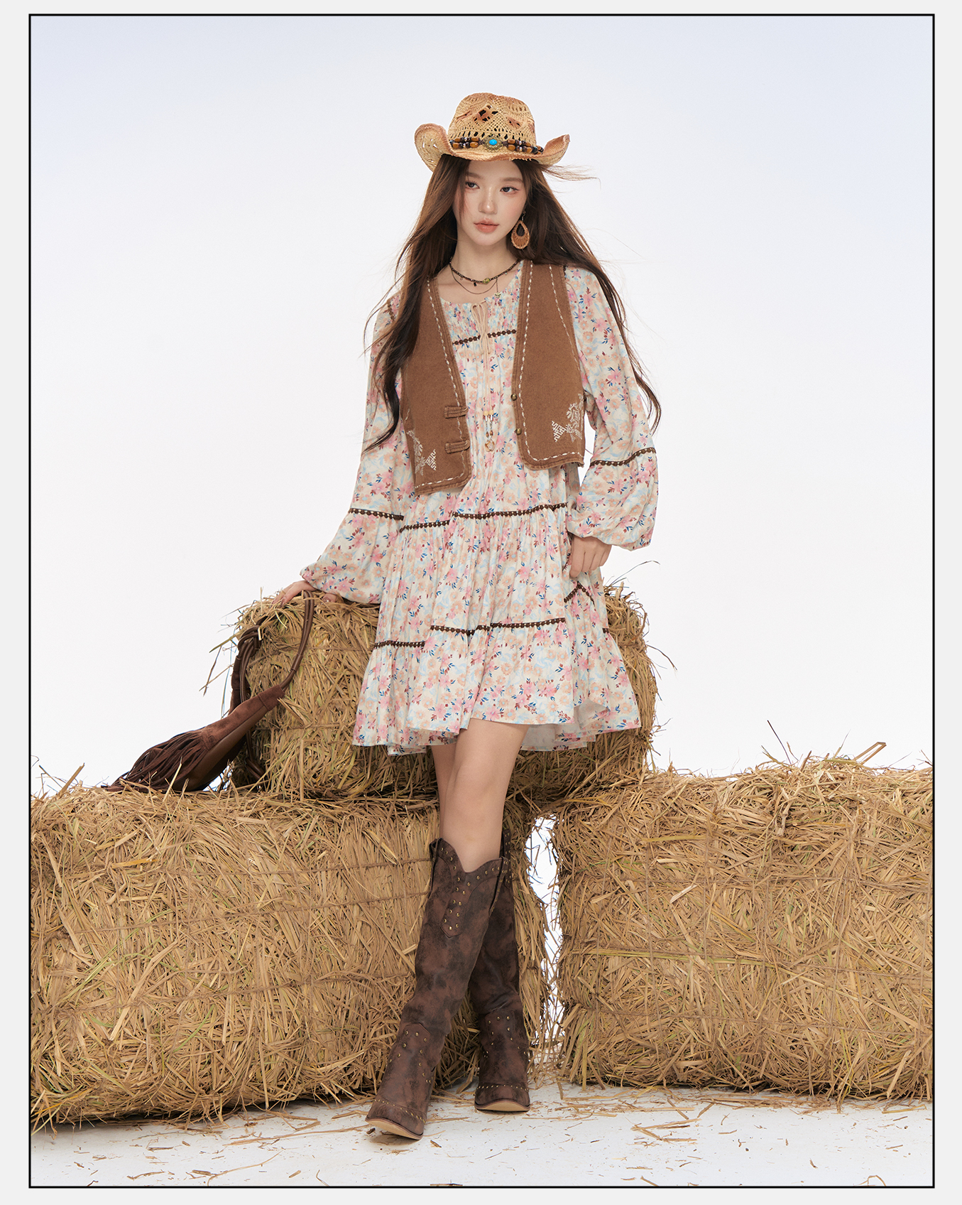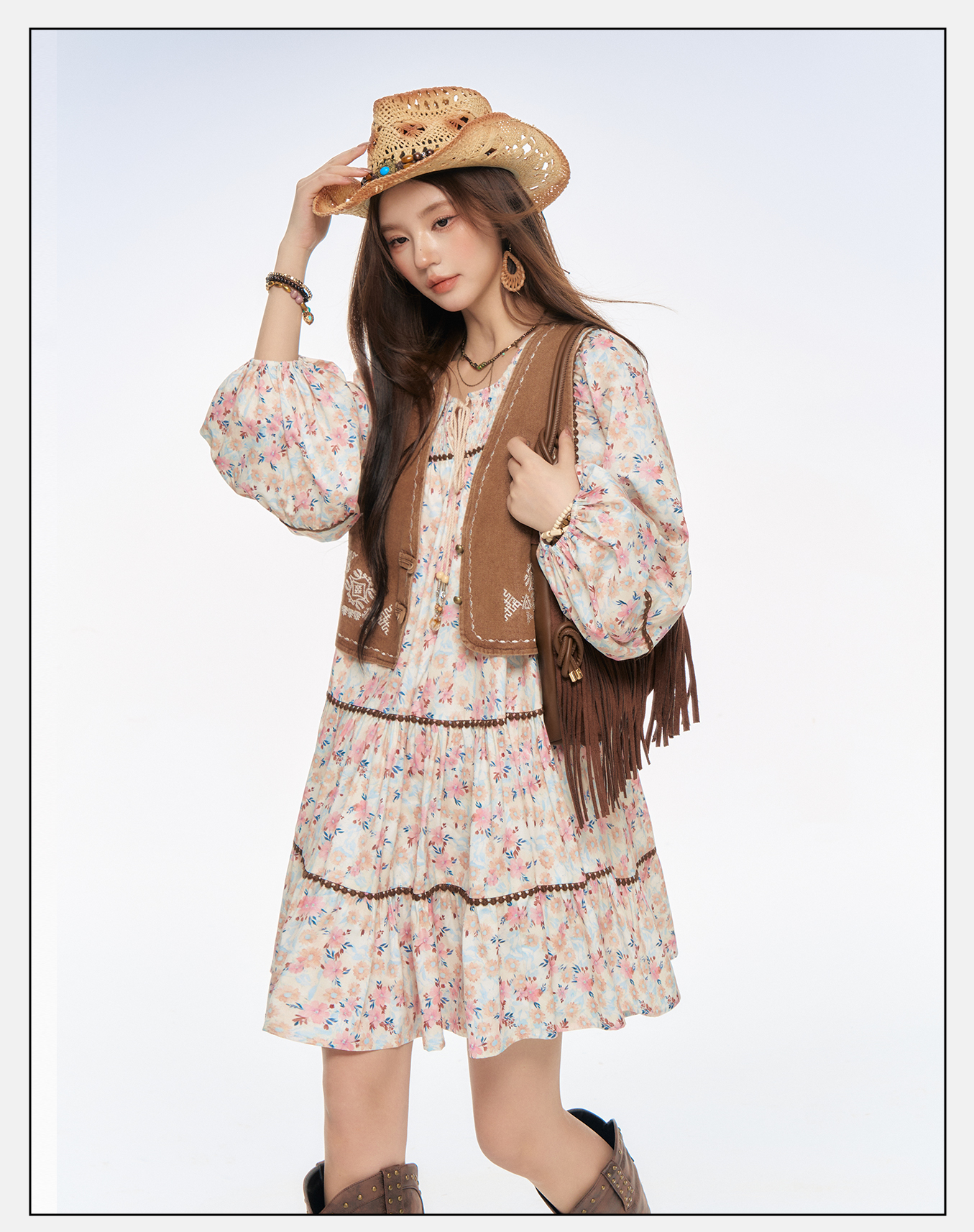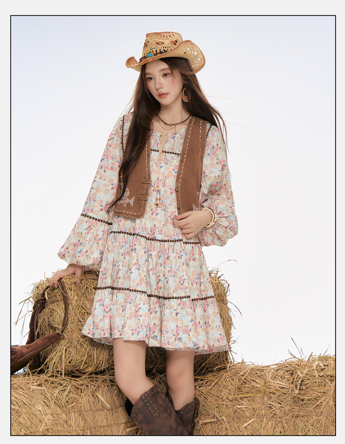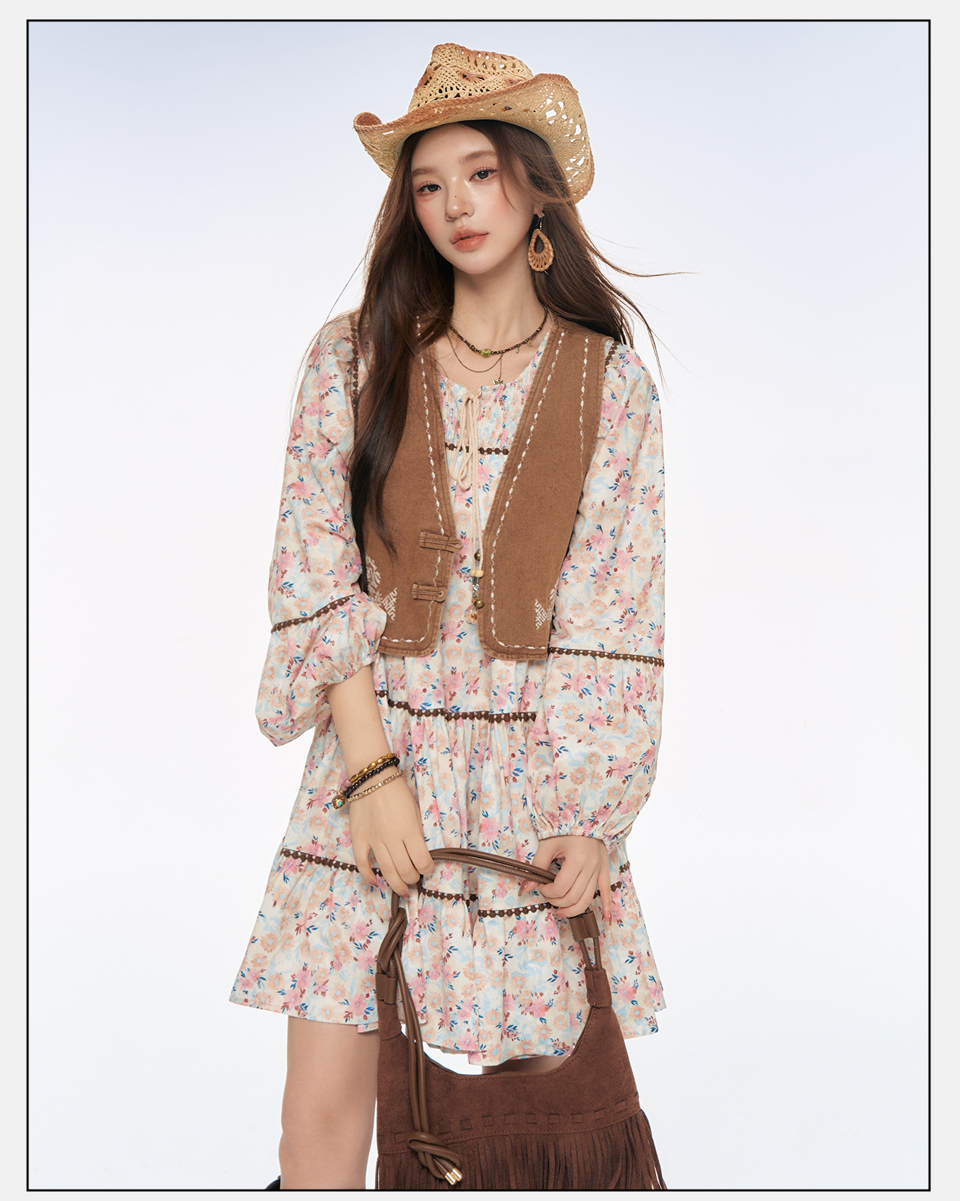 P&X设计师女装2025秋季新款连衣裙马甲套装短裙 825314170 花色