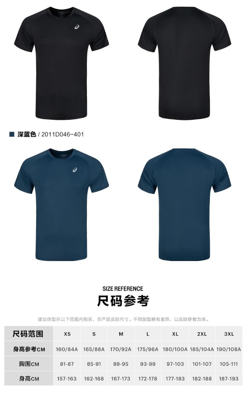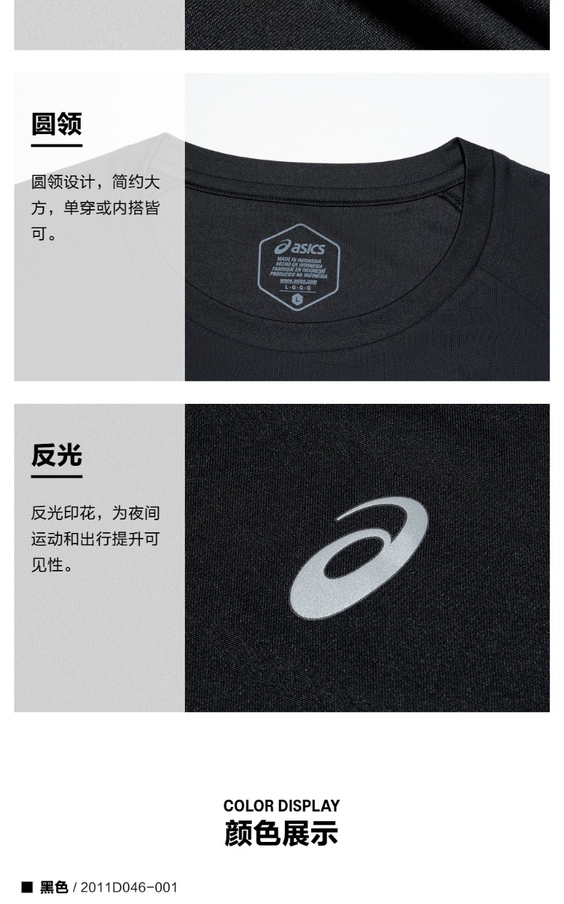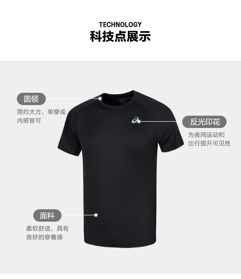 ASICS亚瑟士男式舒适跑步短袖套头圆领反光印花时尚运动T恤2011D046