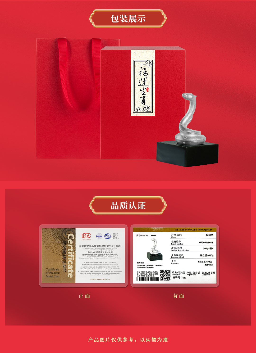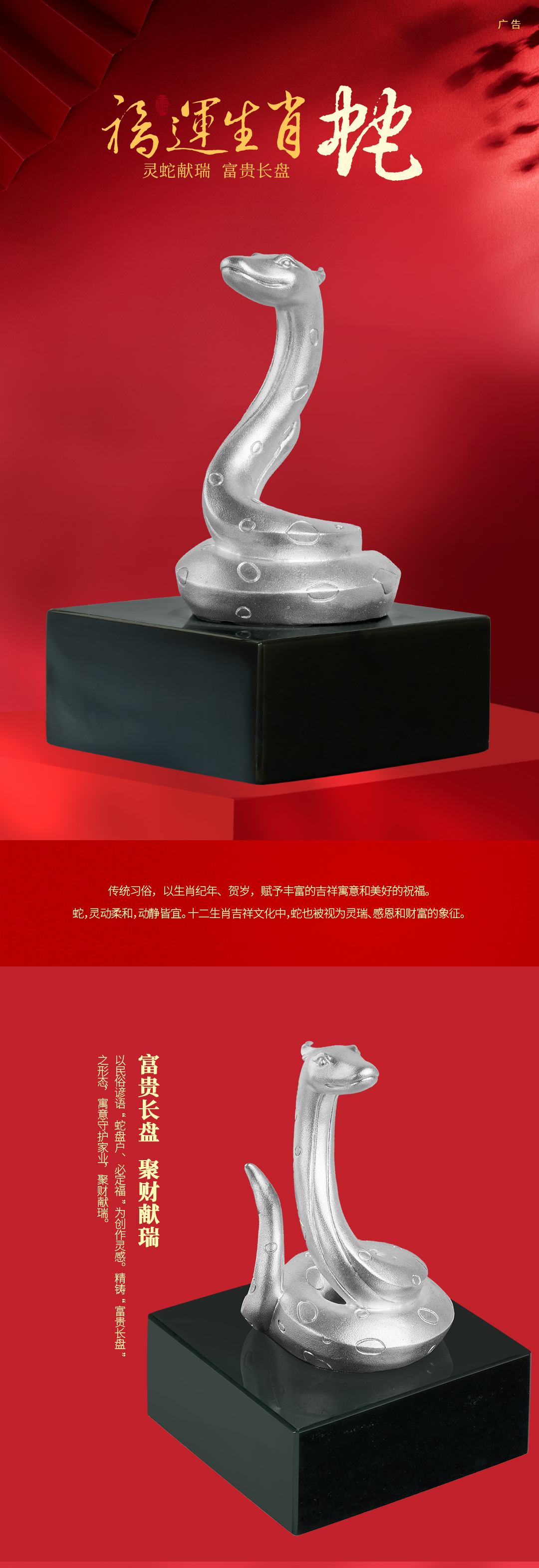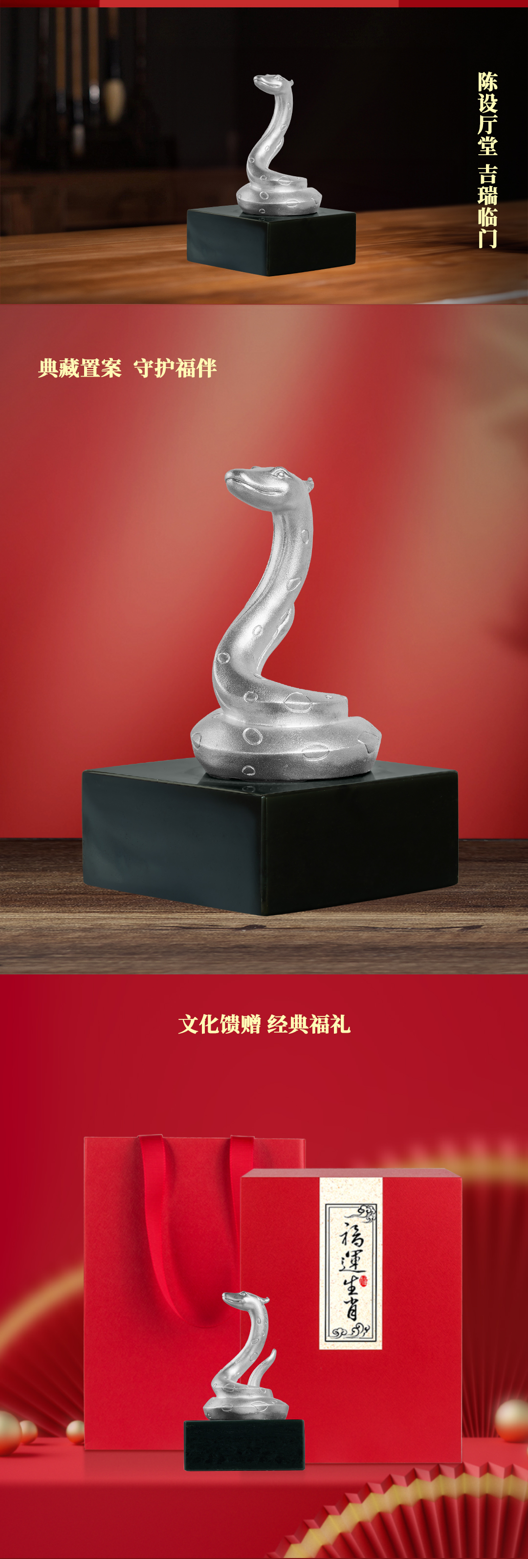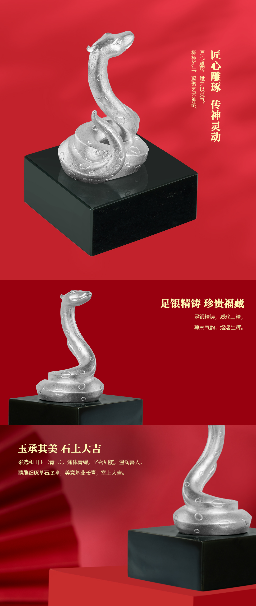《福运生肖·蛇》灵蛇献瑞 富贵长盘 生肖摆件 足银配和田玉(青玉)十二生肖定制
