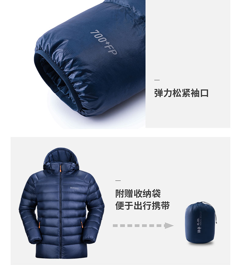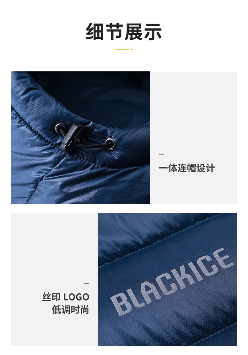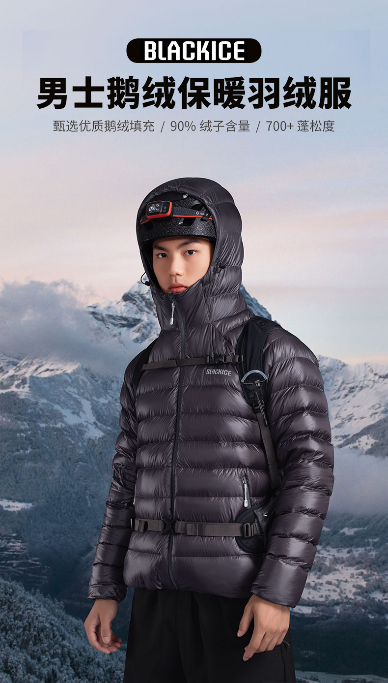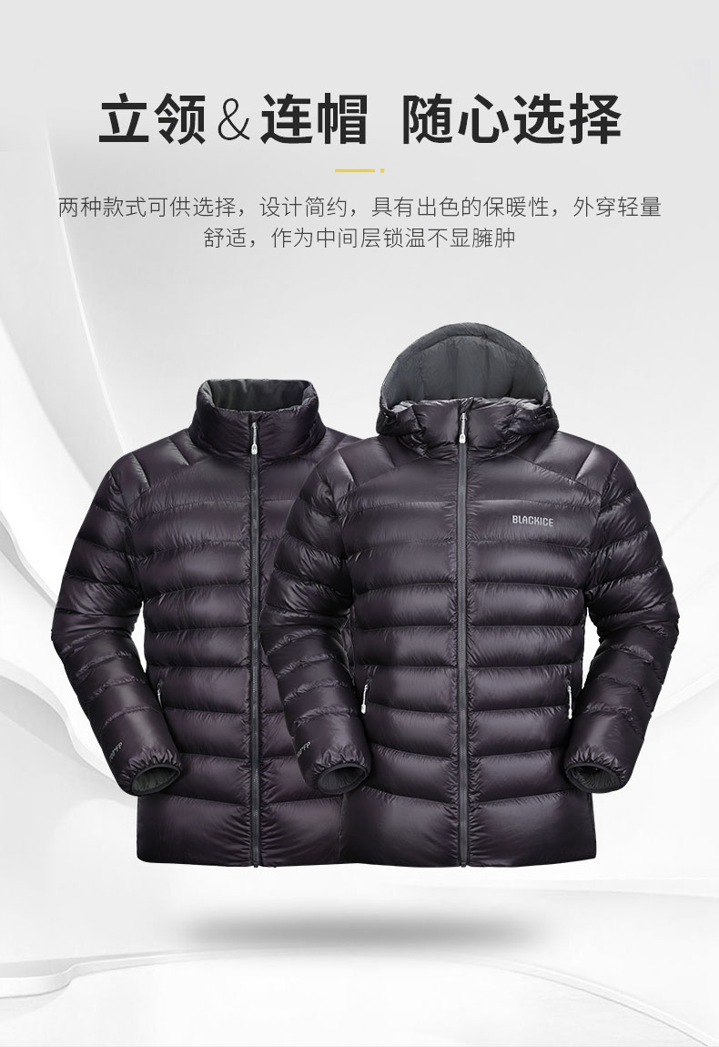 【700蓬 鹅绒新品】黑冰新品户外天权排骨内胆连帽轻量700蓬鹅绒羽绒服男8518