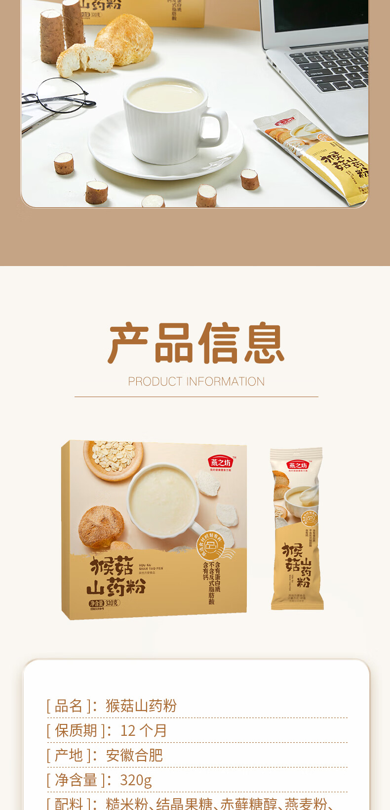 燕之坊 猴头菇山药粉 五谷杂粮粗粮粉 营养早餐粉 冲饮代餐即食粉 猴头菇山药粉 320g