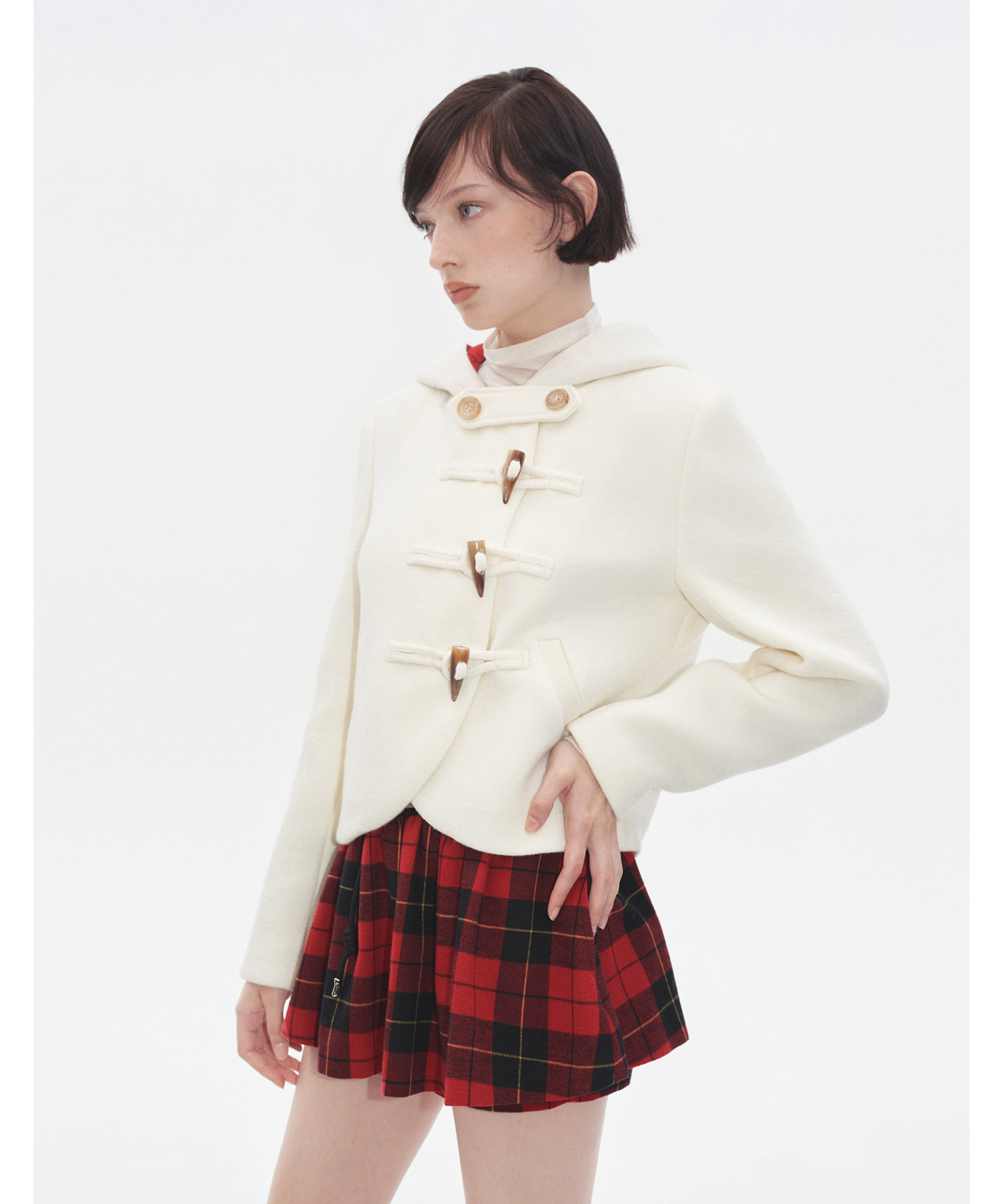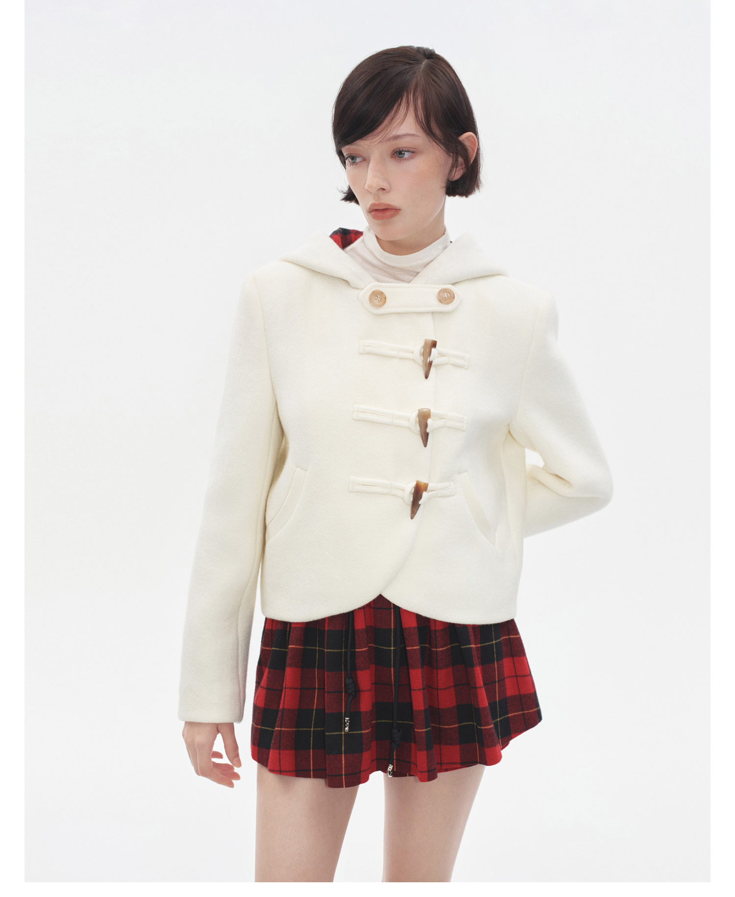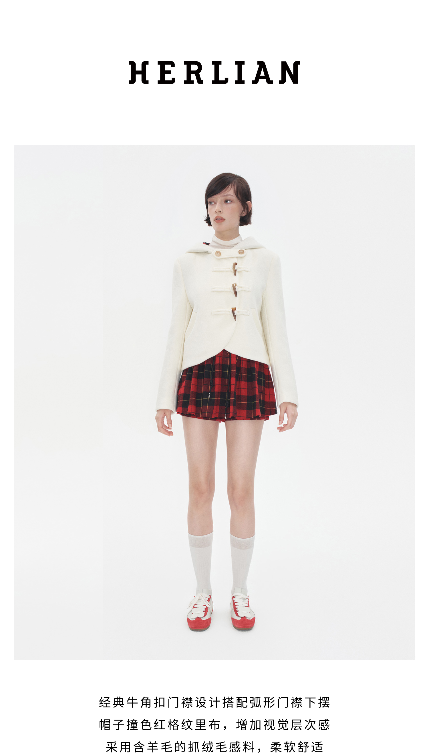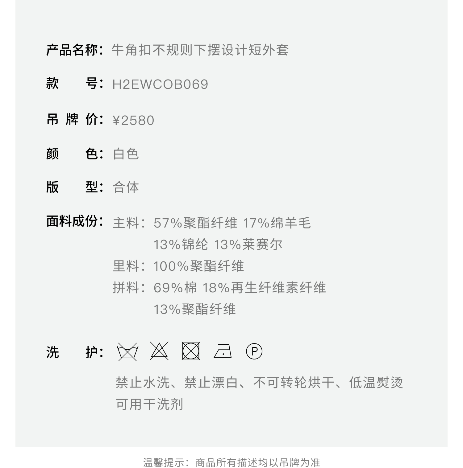 HERLIAN 2025秋季新品女士牛角扣不规则下摆设计短外套