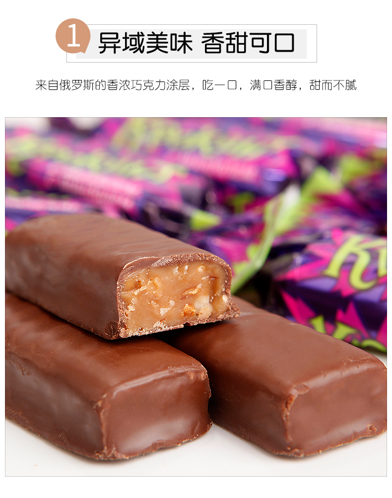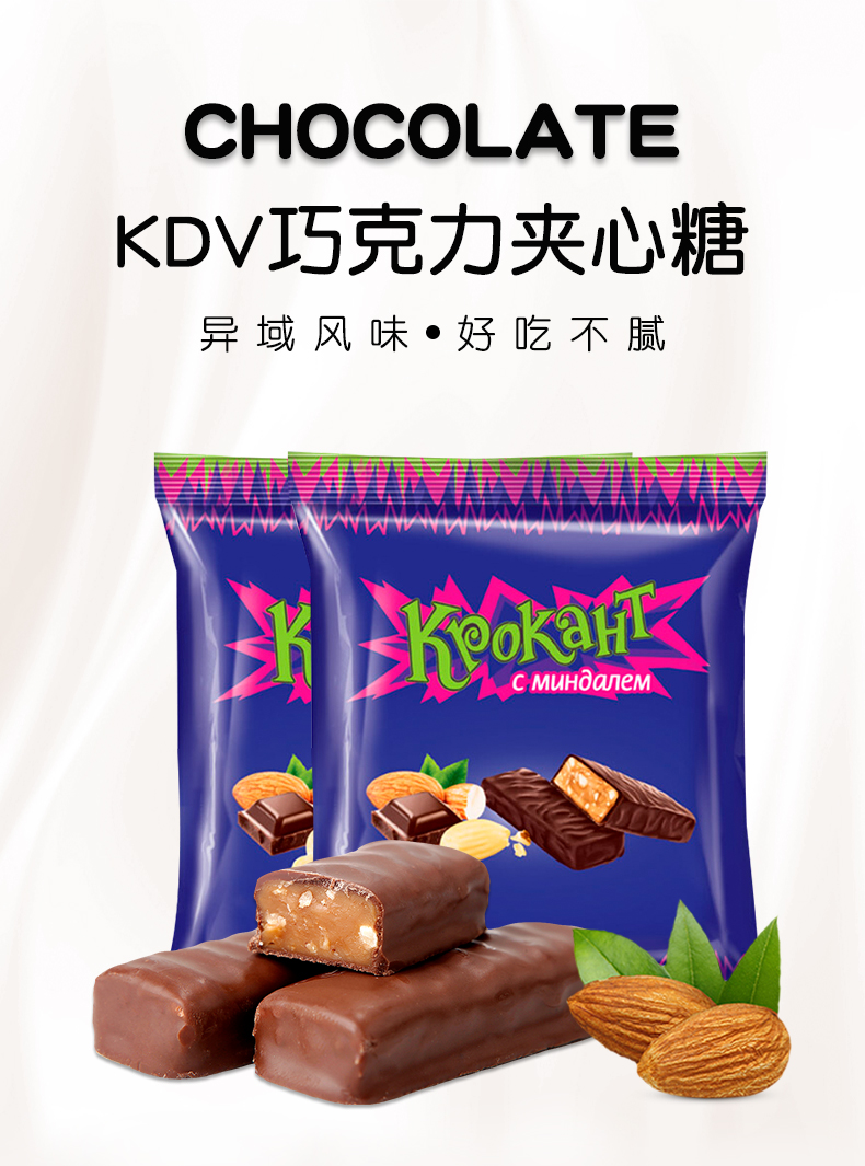 俄罗斯KDV巧克力味夹心糖100g/500g 口感酥脆满香醇甜而不腻 060018-1/064142