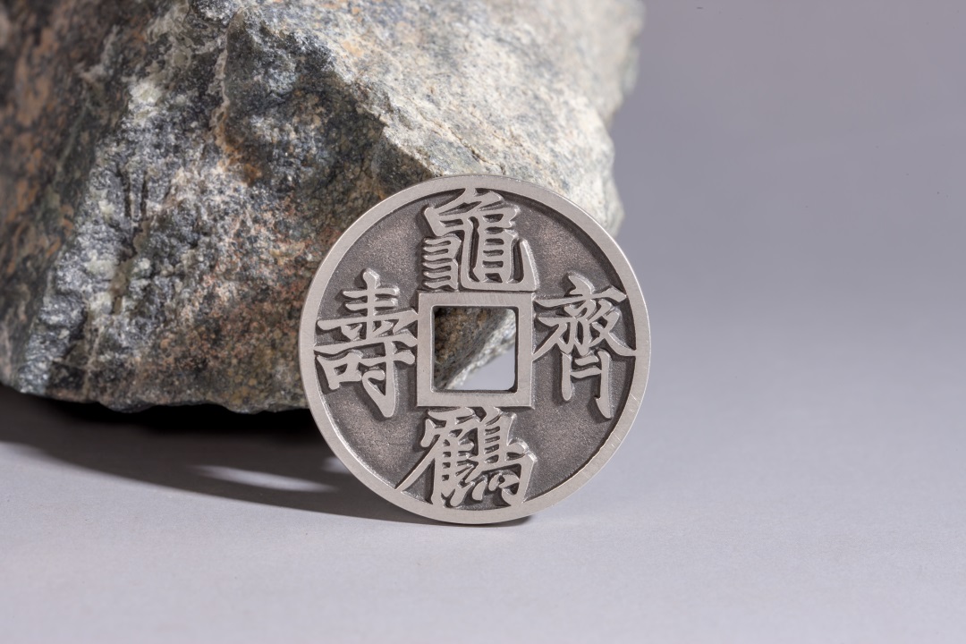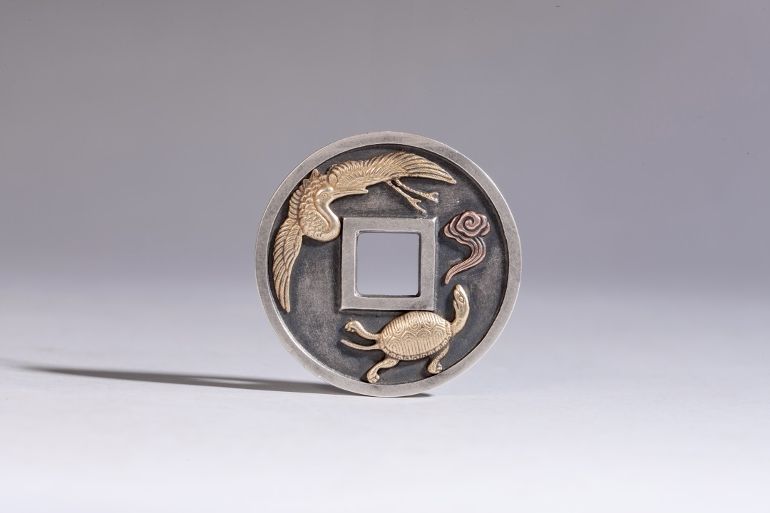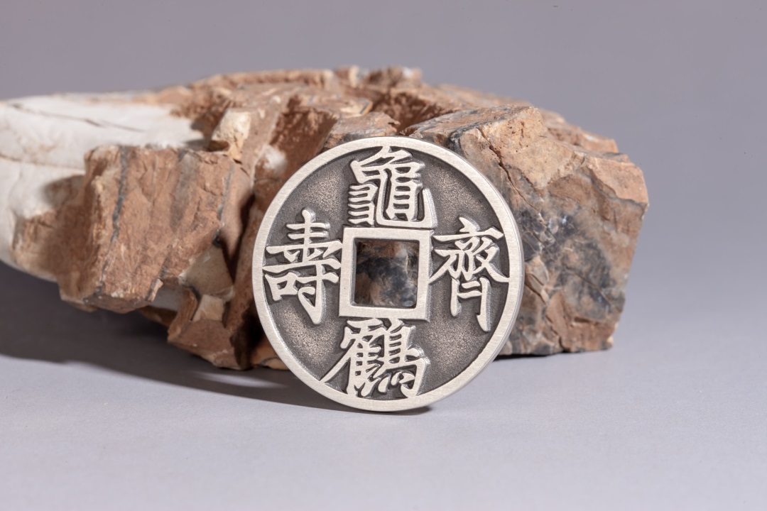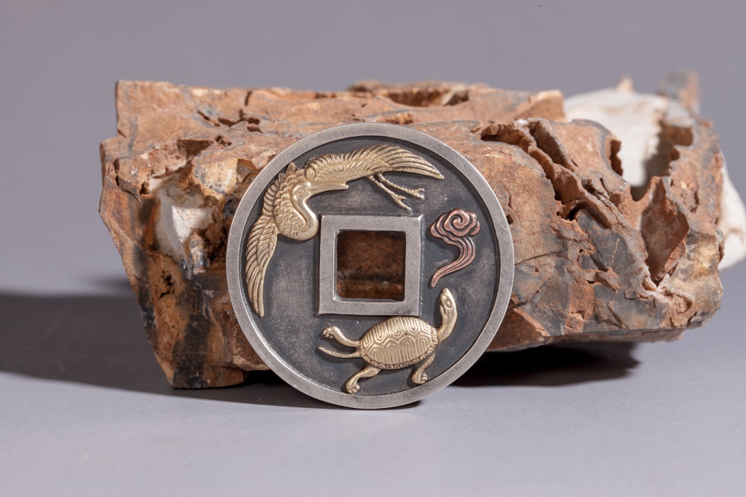 矩德泉坊 纯银手作 龟鹤齐寿浮雕镶嵌(3.6厘米版)gq220800582