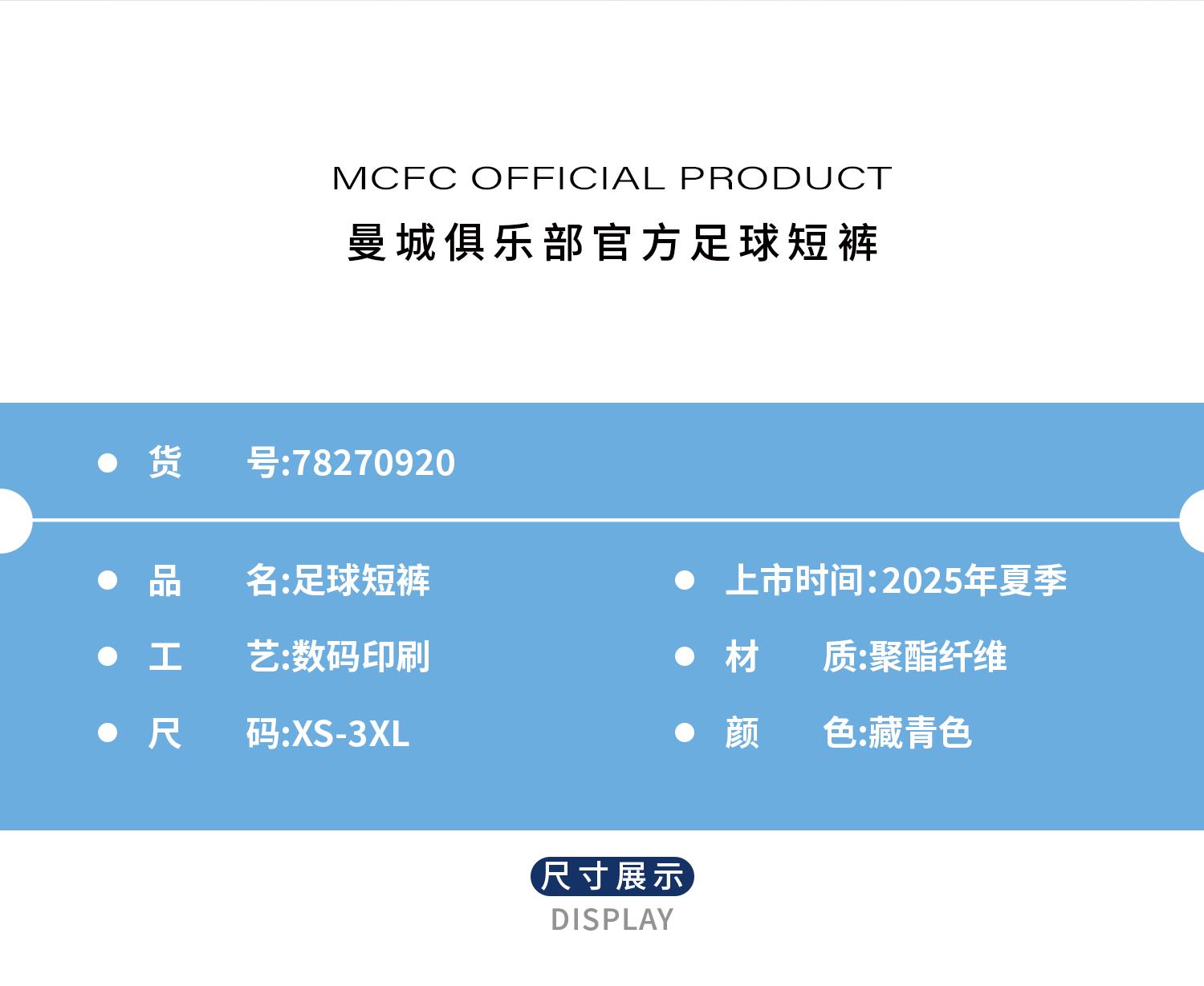 【官网同款】曼城俱乐部 | 夏季新款足球短裤藏青色运动休闲裤