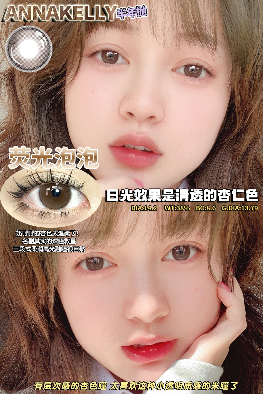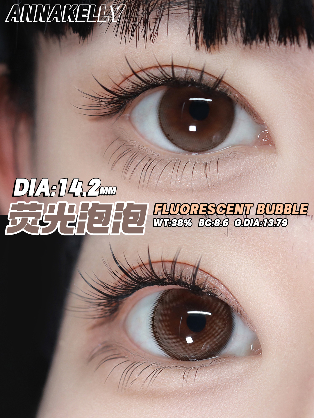 annakelly 荧光泡泡 好甜的棕色 半年抛 14.2mm 含硅水凝胶