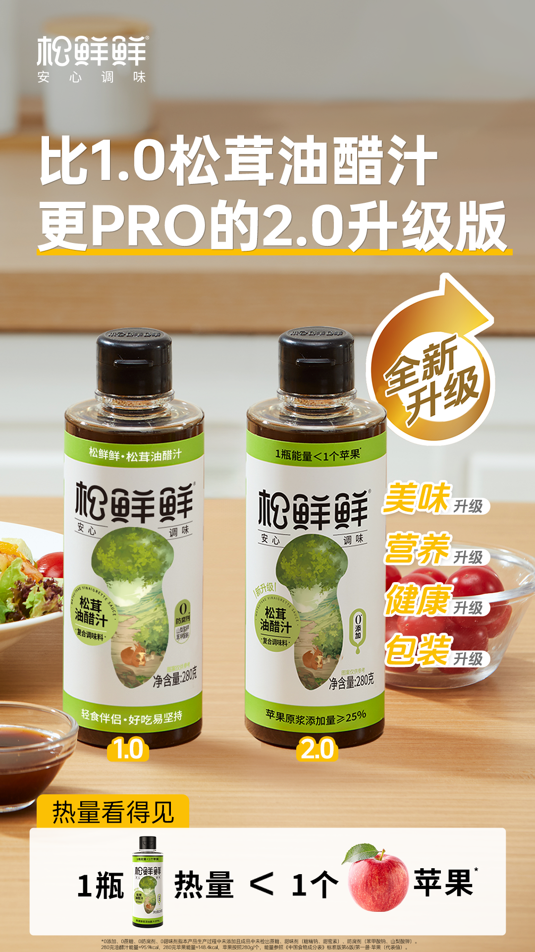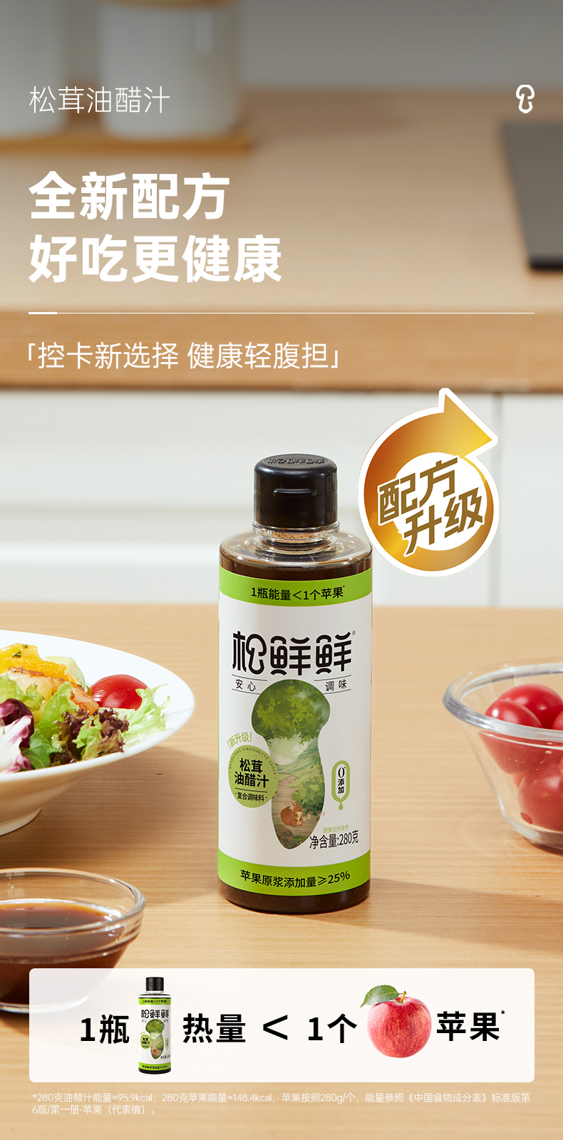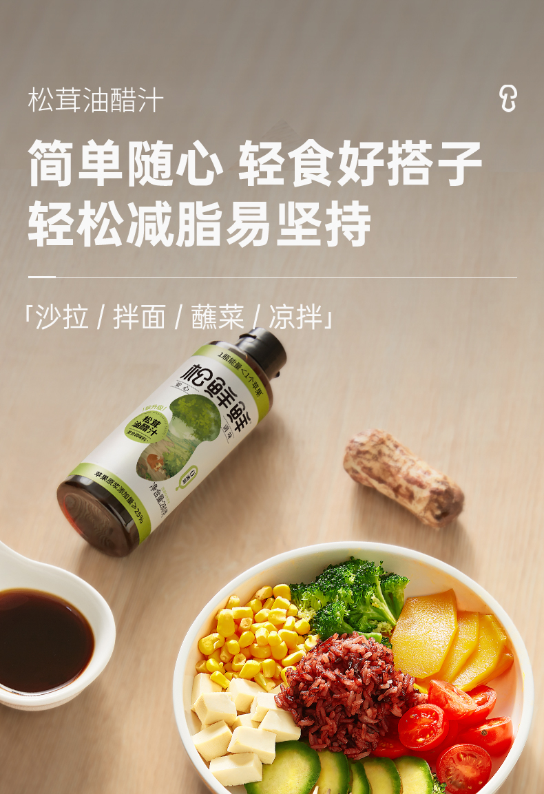 【2瓶装】松鲜鲜松茸油醋汁 0脂肪0蔗糖低钠 炒菜凉拌百搭调味汁 健康轻食调味品 轻松享“瘦”