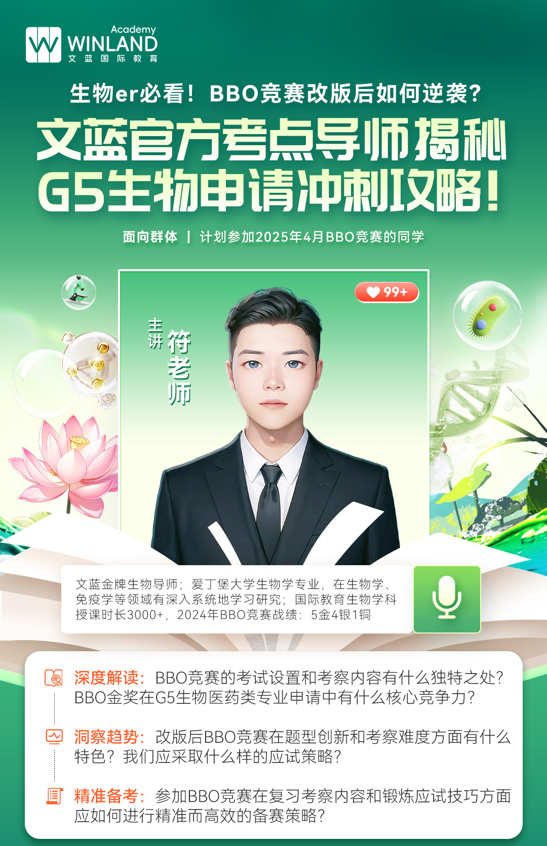 【3.10】生物er必看!BBO竞赛改版后如何逆袭?文蓝官方考点导师揭秘G5生物申请冲刺攻略! 商品缩略图0