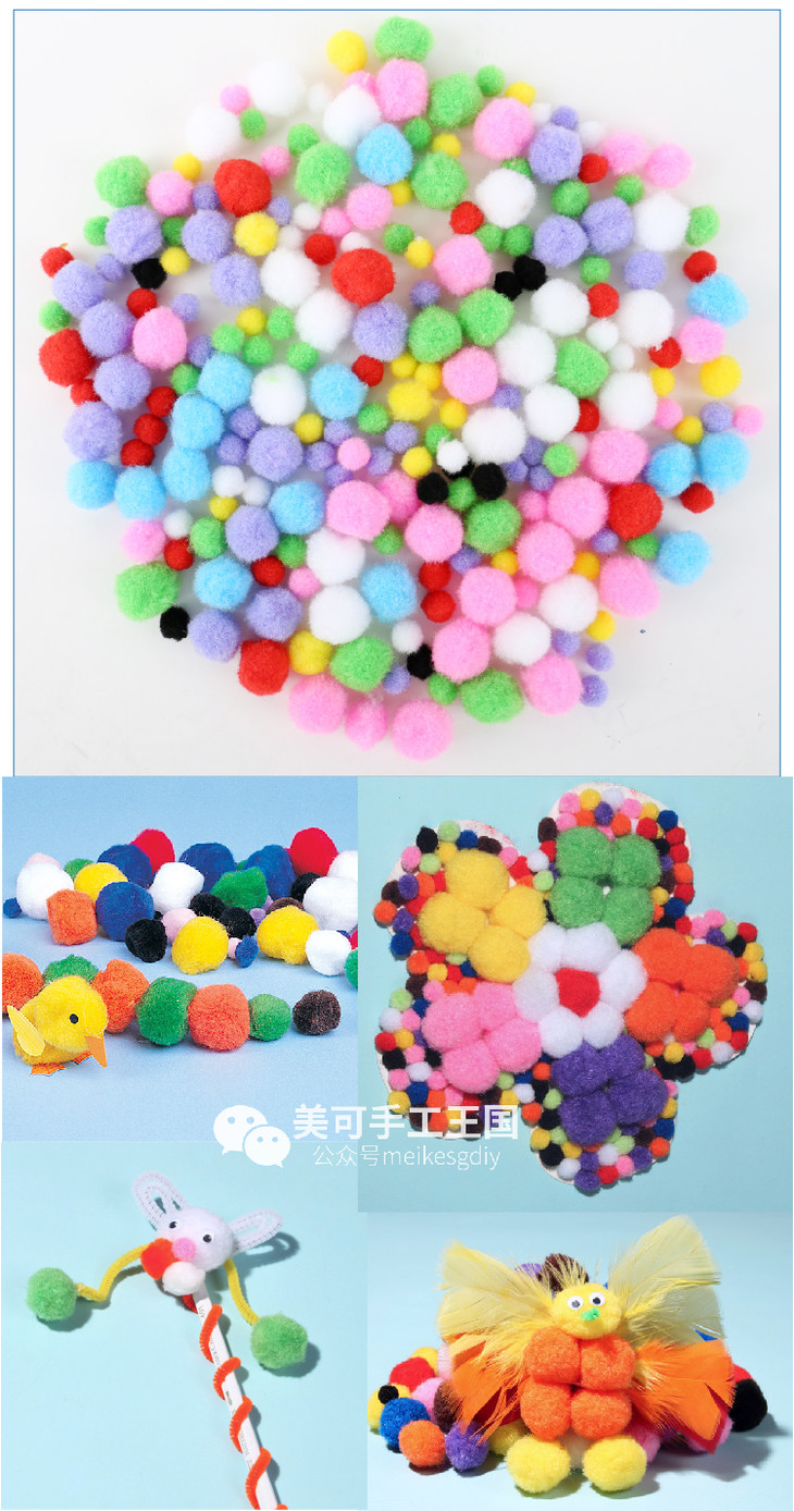 幼儿园课堂手工DIY创意手工,混色绒球材料包
