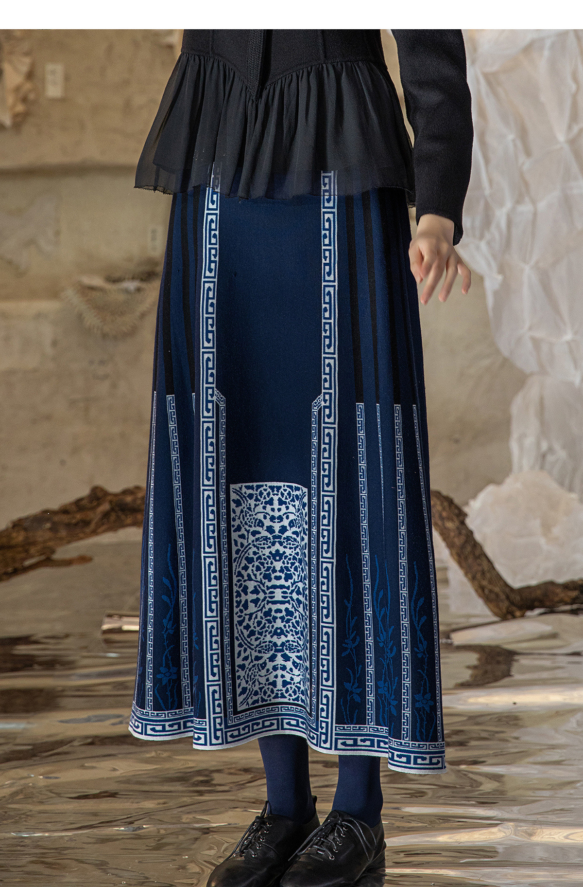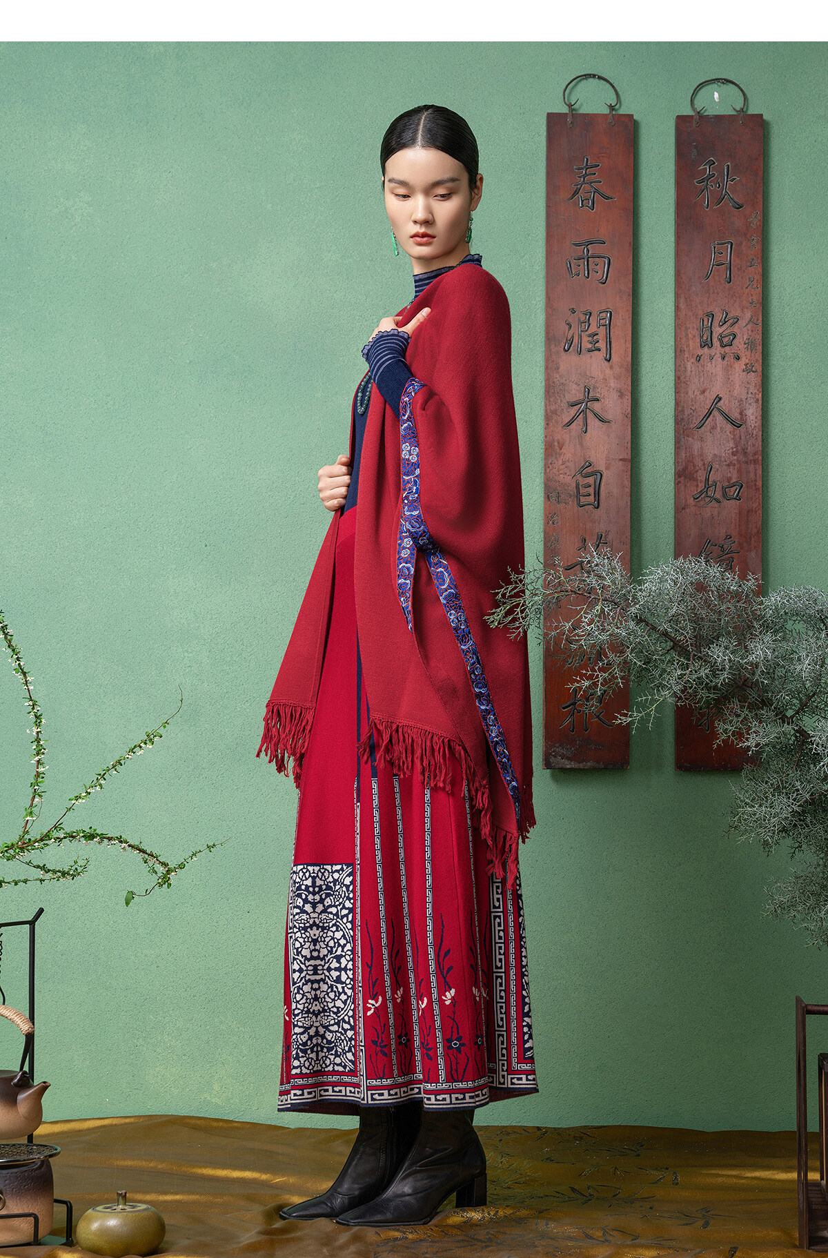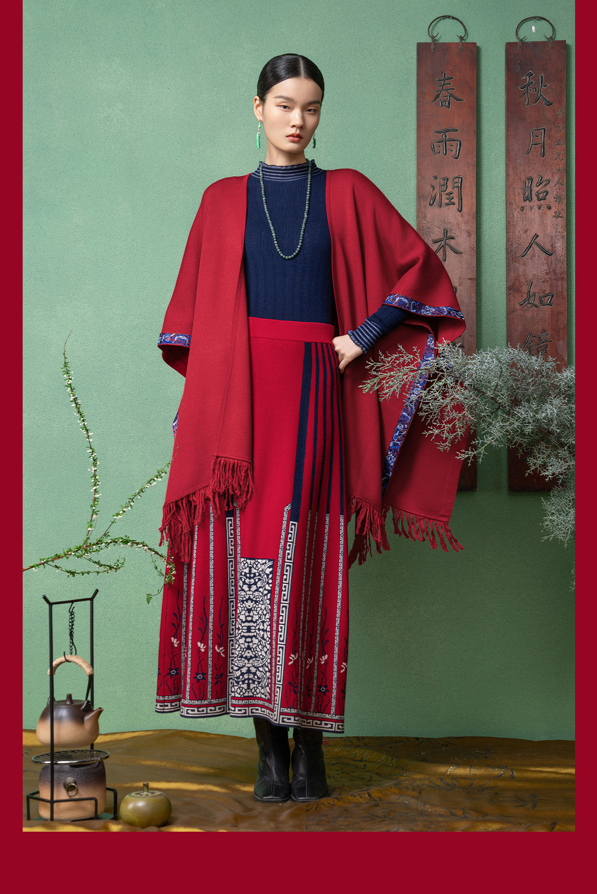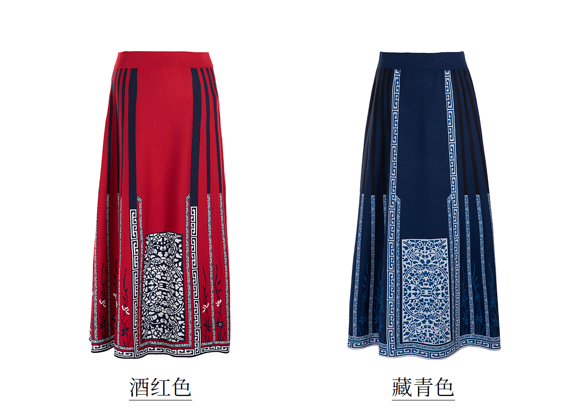 【林栖设计小店】(现货)红色针织毛织马面裙系列秋季新品原创复古绵羊毛提花针织半身裙子1924141