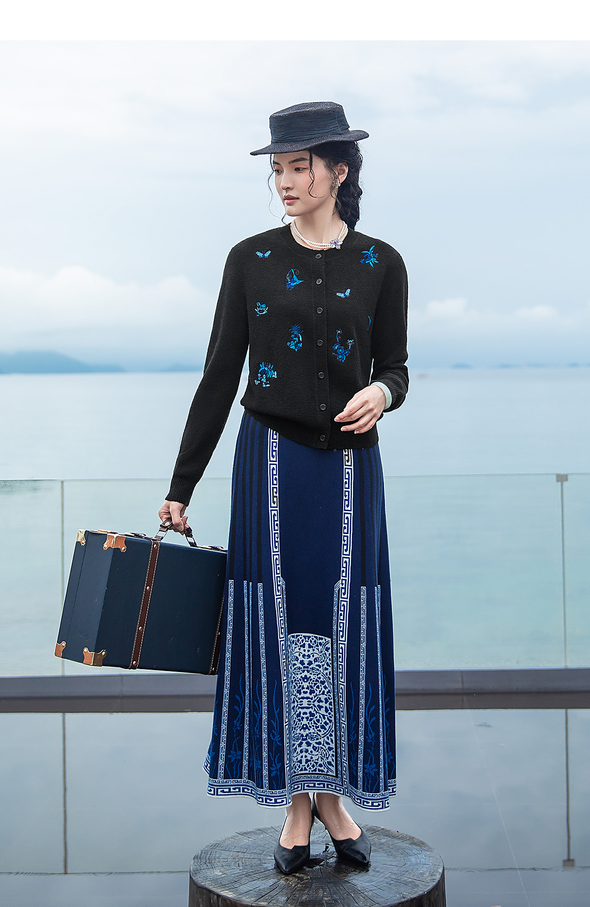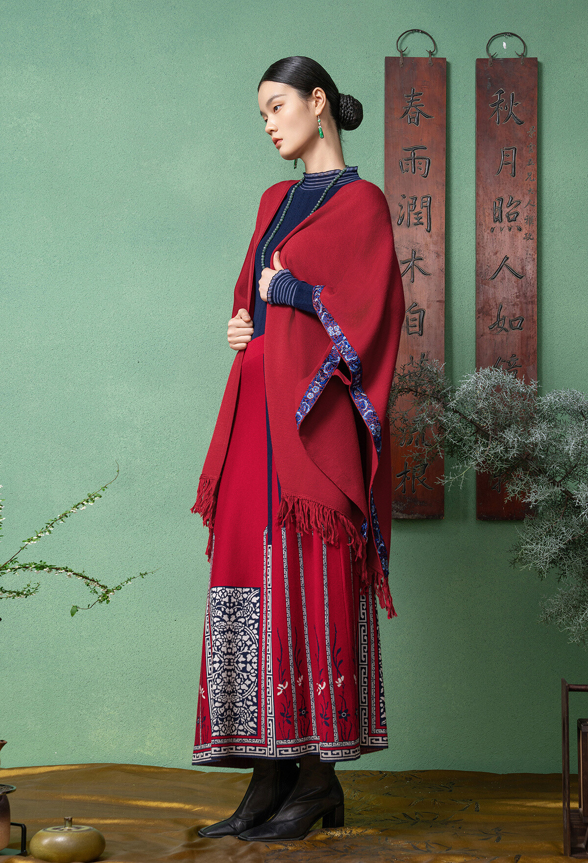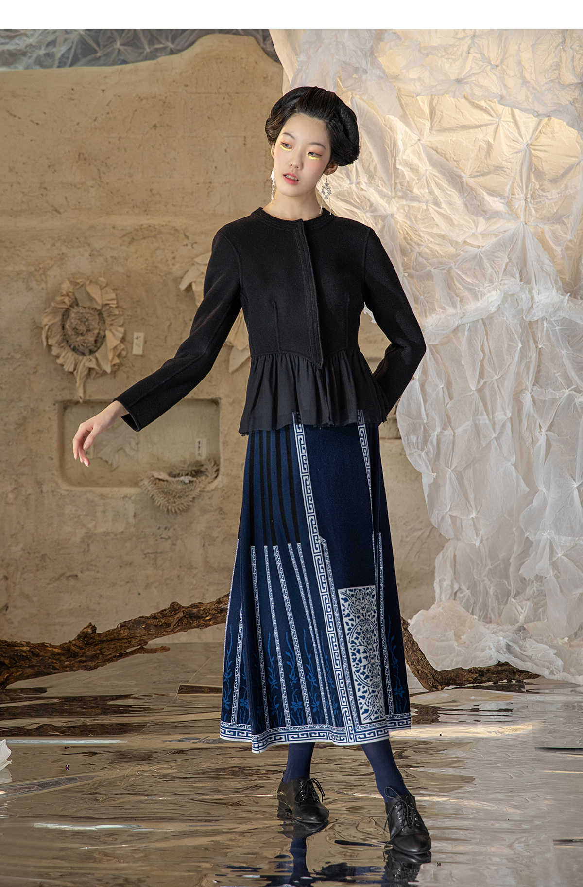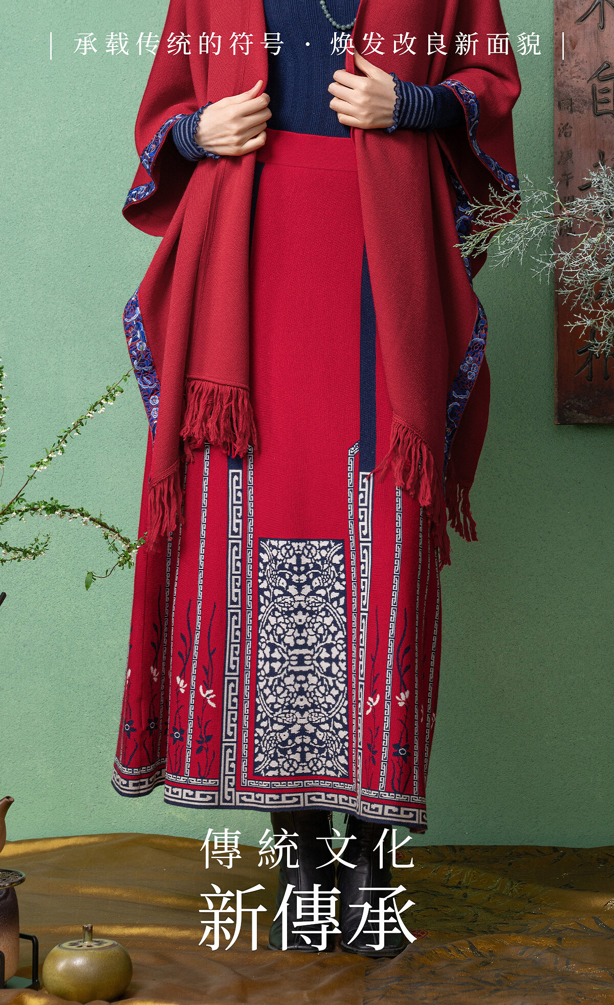 【林栖设计小店】(现货)红色针织毛织马面裙系列秋季新品原创复古绵羊毛提花针织半身裙子1924141