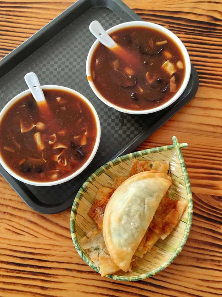 在冬日的清晨喝上一碗用逍遥老杨家煮出来的热气腾腾的胡辣汤 汤鲜味美、配上油条,水煎包等 暖心又暖肚🌞 别提多舒坦啦😁