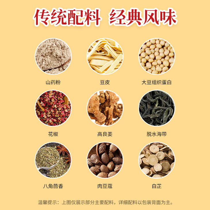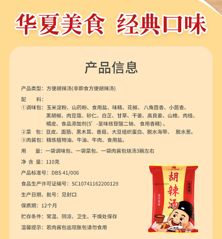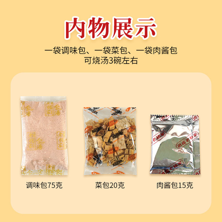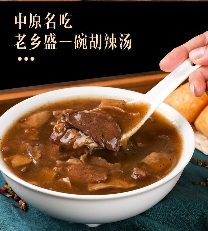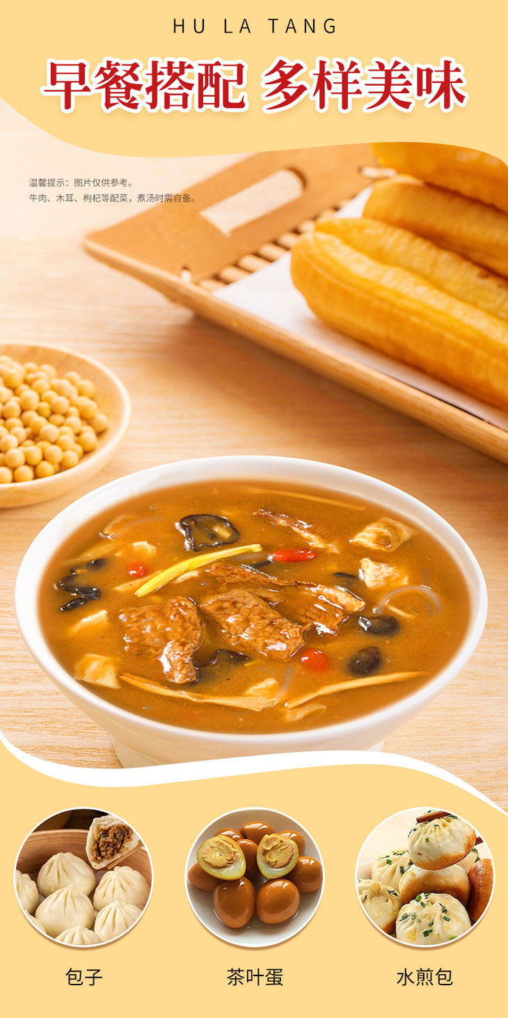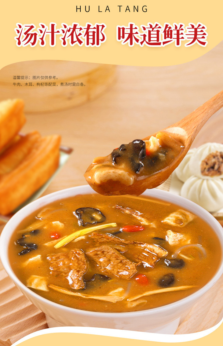 调味包:胡辣汤不可或缺的一步 配备的调味包,采用精制玉米淀粉和山药粉 混合了黑胡椒和花椒等多种香辛料 用淀粉勾芡,这是让胡辣汤成糊的关键✅