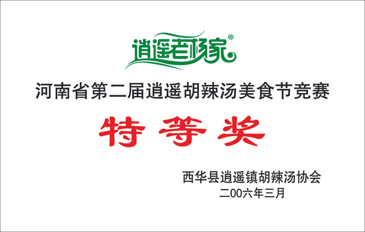逍遥老杨家胡辣汤 在2006年河南省第二届逍遥镇胡辣汤美食节竞赛上从众多参赛者中脱颖而出,荣获特等奖🏅 还是河南电视台的上榜品牌哦~