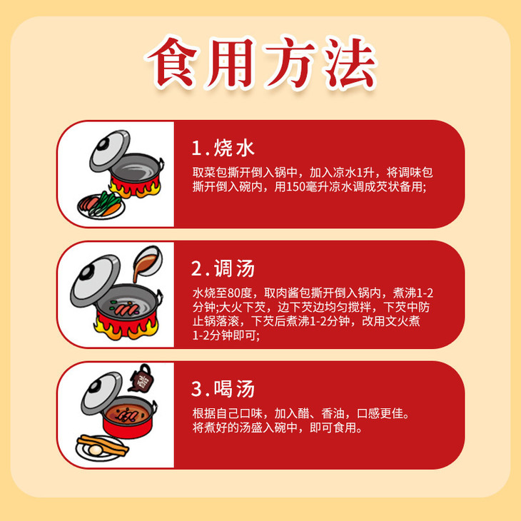 胡辣汤的吃法很简单,只需3步 烧开水→倒料→煮开勾芡 完成✅ 出锅点几滴油陈醋~就能吃到热辣美味的胡辣汤 只需要注意加水量 怎么煮都好喝💯 就连做饭小白也能轻松上手 做出来色香味儿和老家街上胡辣汤一模一样