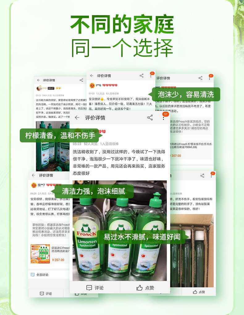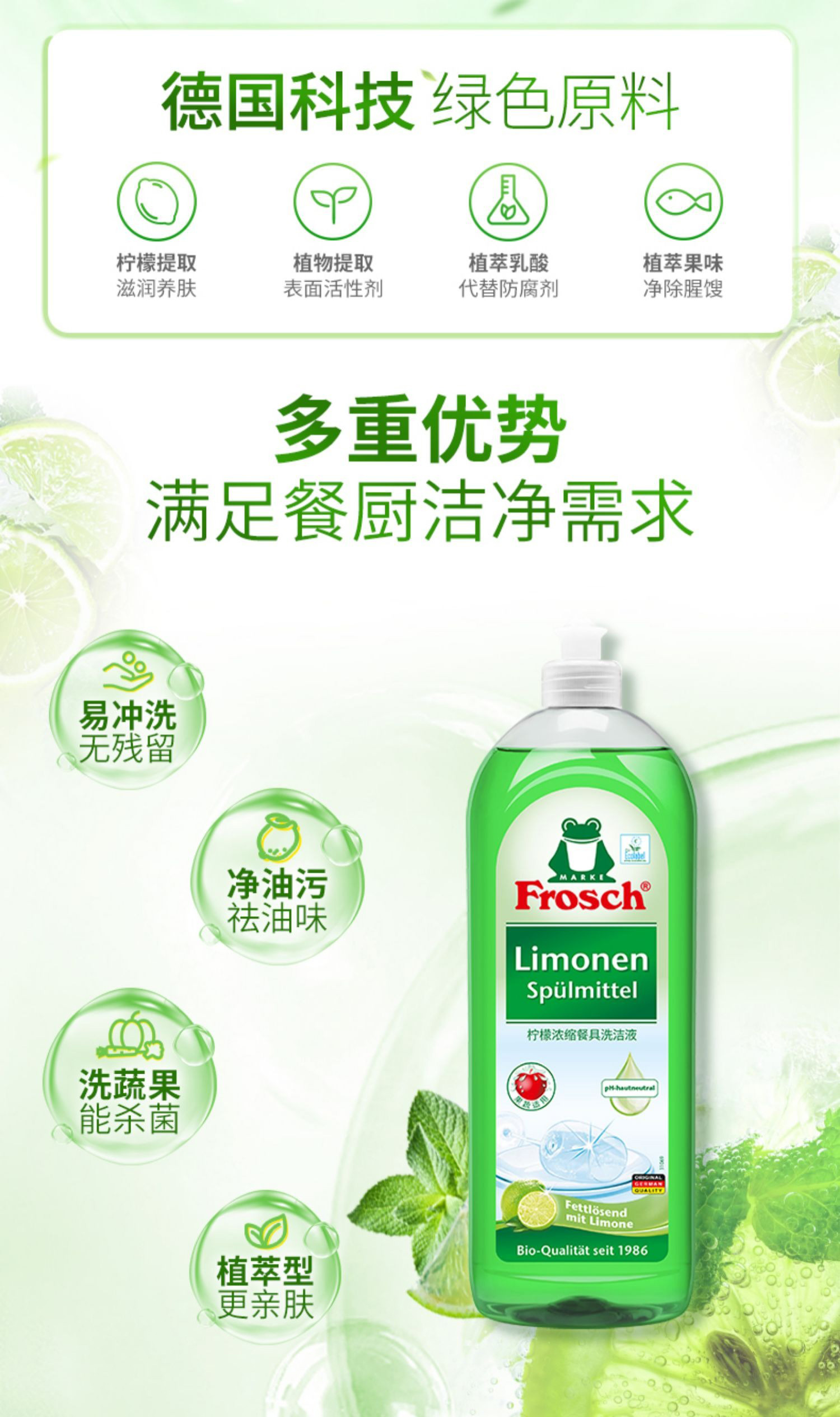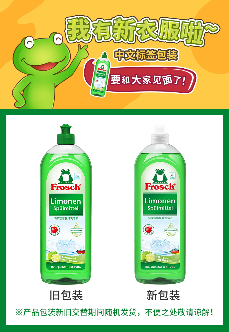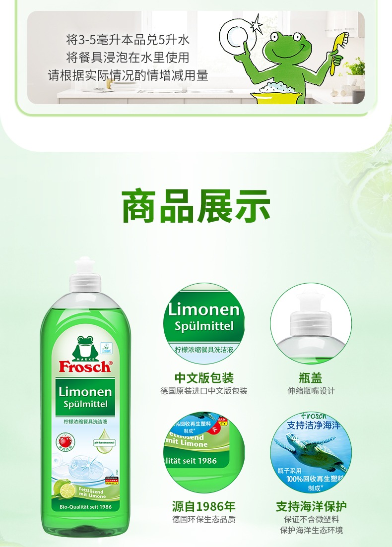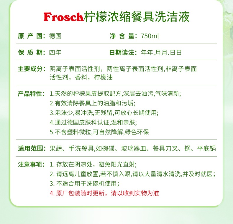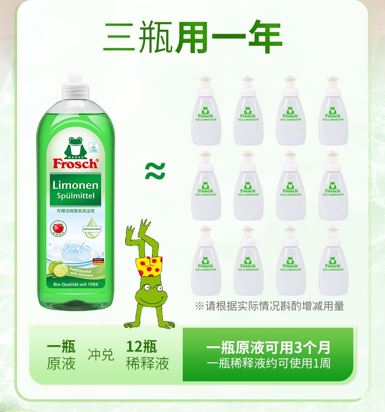 750m*2瓶/3瓶Frosch柠檬浓缩洗洁液德国进口【伊藤优选302209】