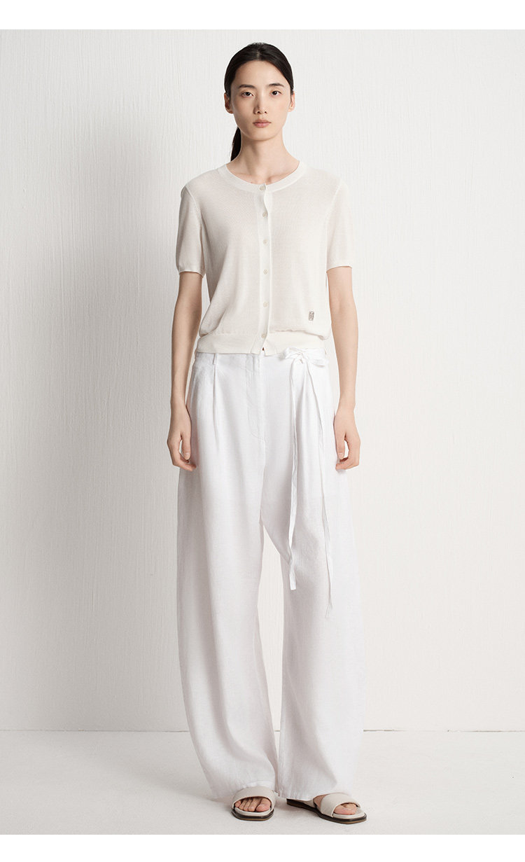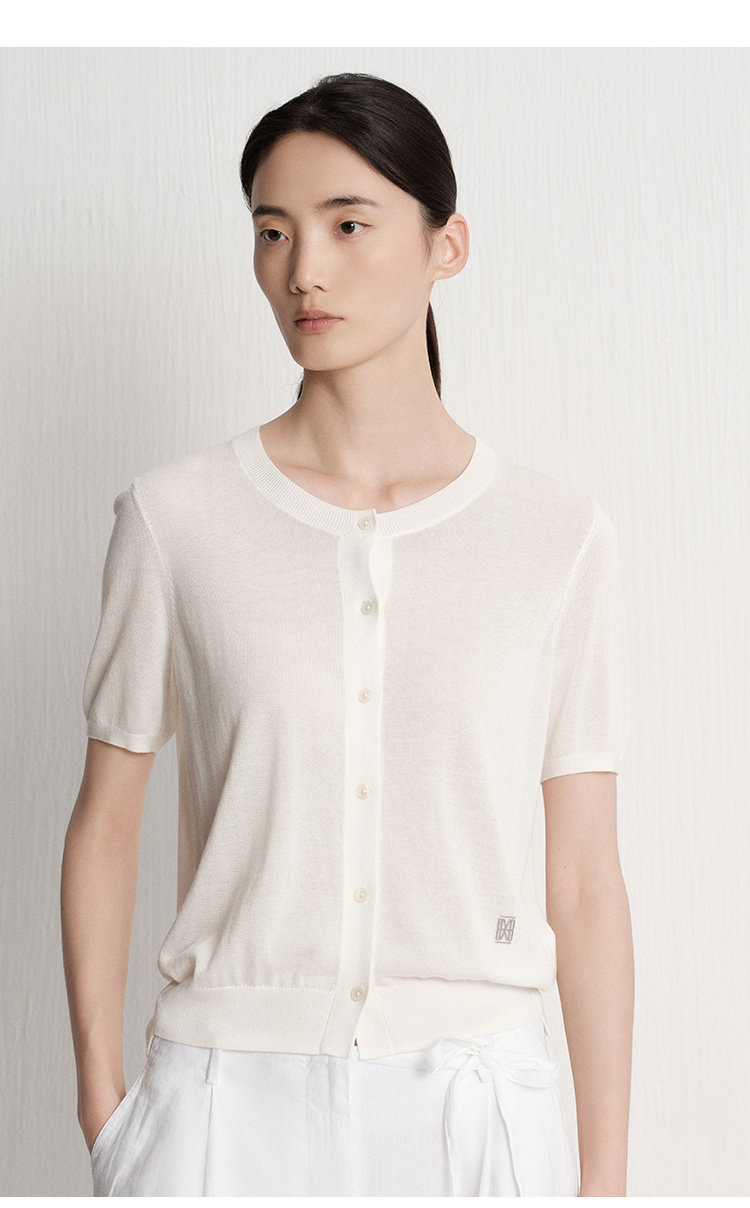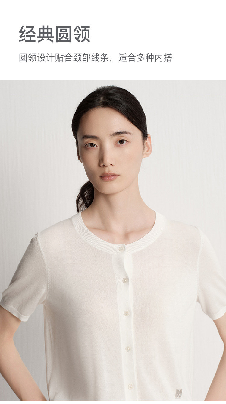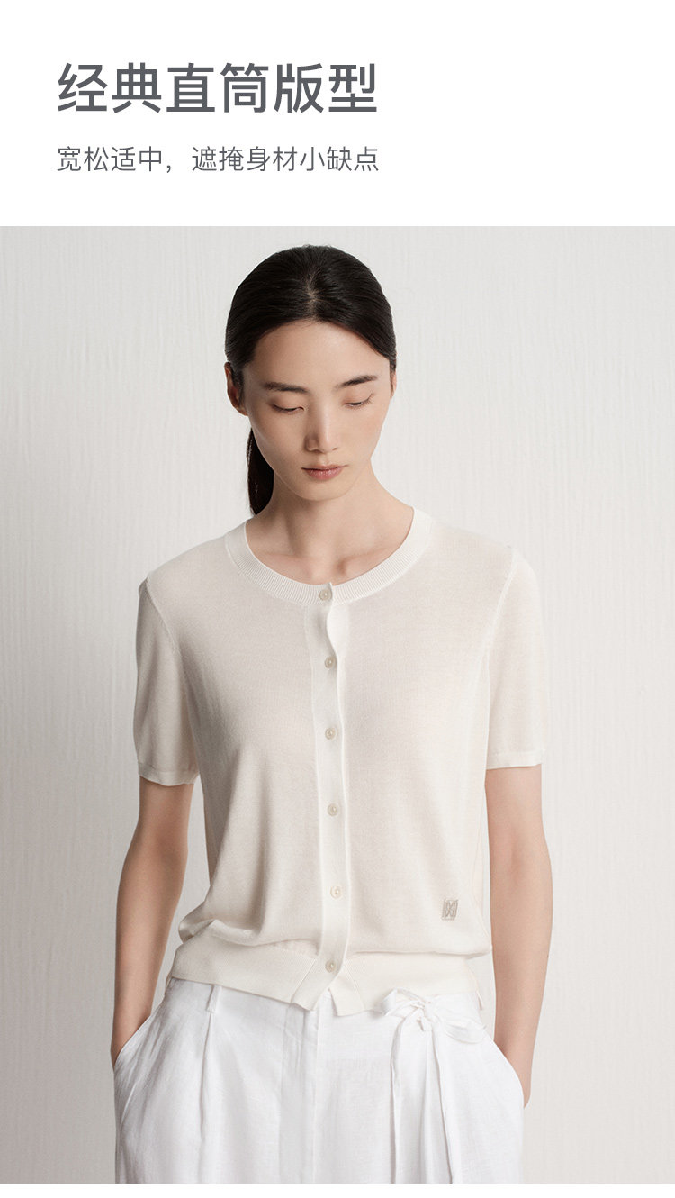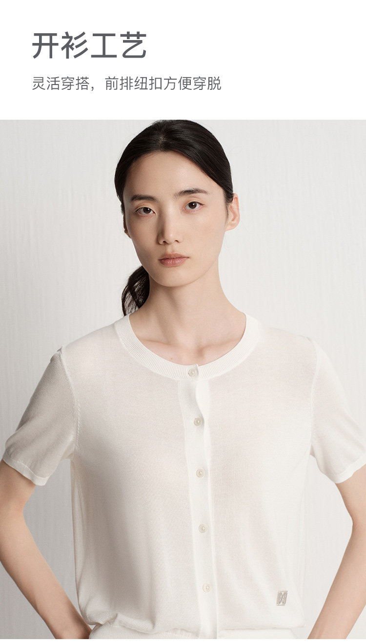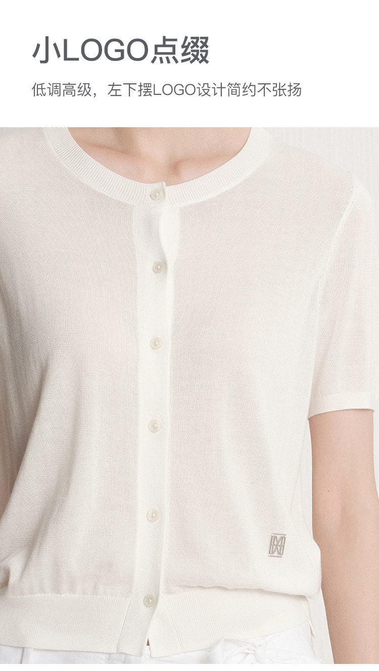 Marc O'Polo夏季新款好看气质白色舒适短袖毛织开衫女士上衣小衫