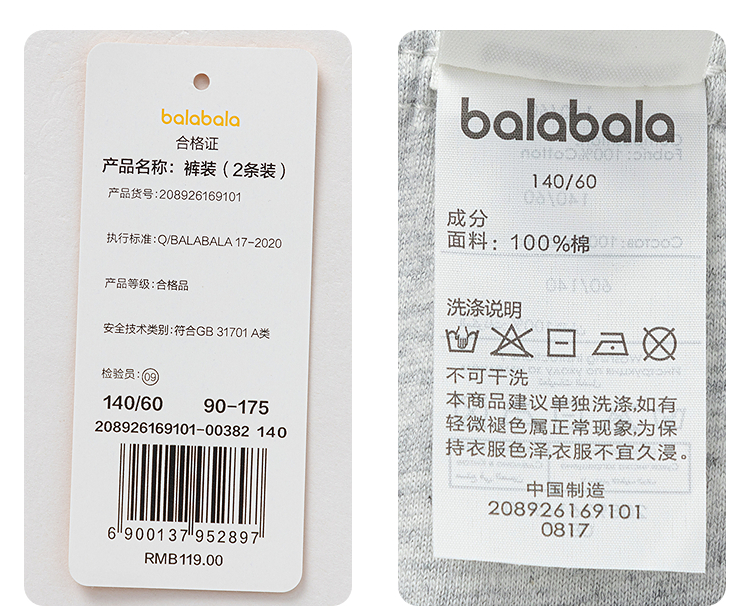 【balaOne】巴拉巴拉男童打底裤夏季儿童睡裤纯棉舒适亲肤两条装