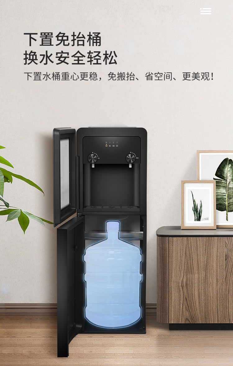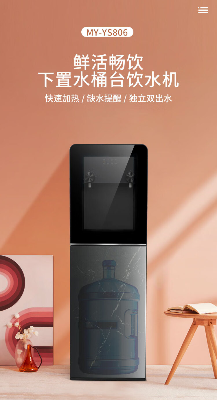 美菱(MeiLing) 茶吧机 办公室 家用立式饮水机 下置式水桶 快速加热 缺水提醒 独立双出水 玻璃门 MY-YS806