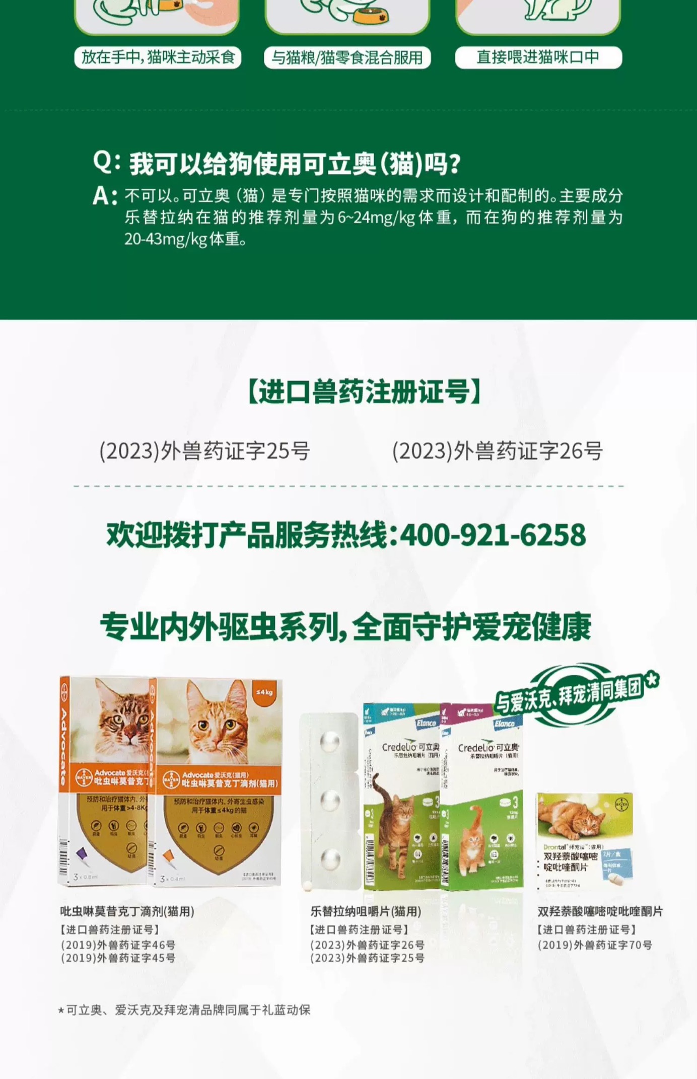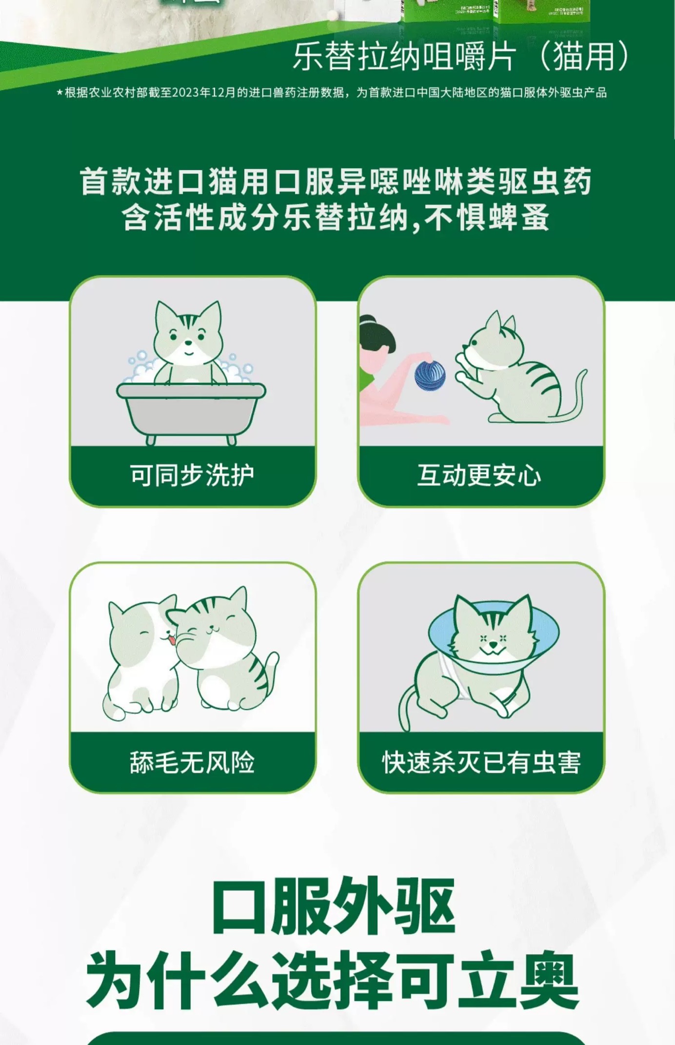 可立奥乐替拉纳 猫口服外驱 猫用 驱跳蚤蜱虫 一月一次 快速起效 法国进口 体外驱虫(预售5天)