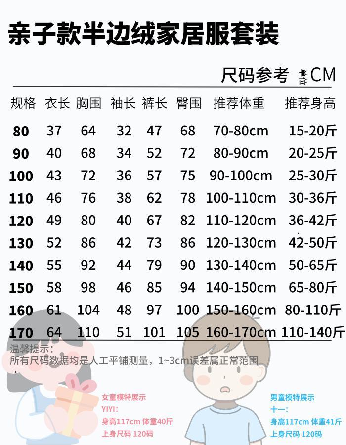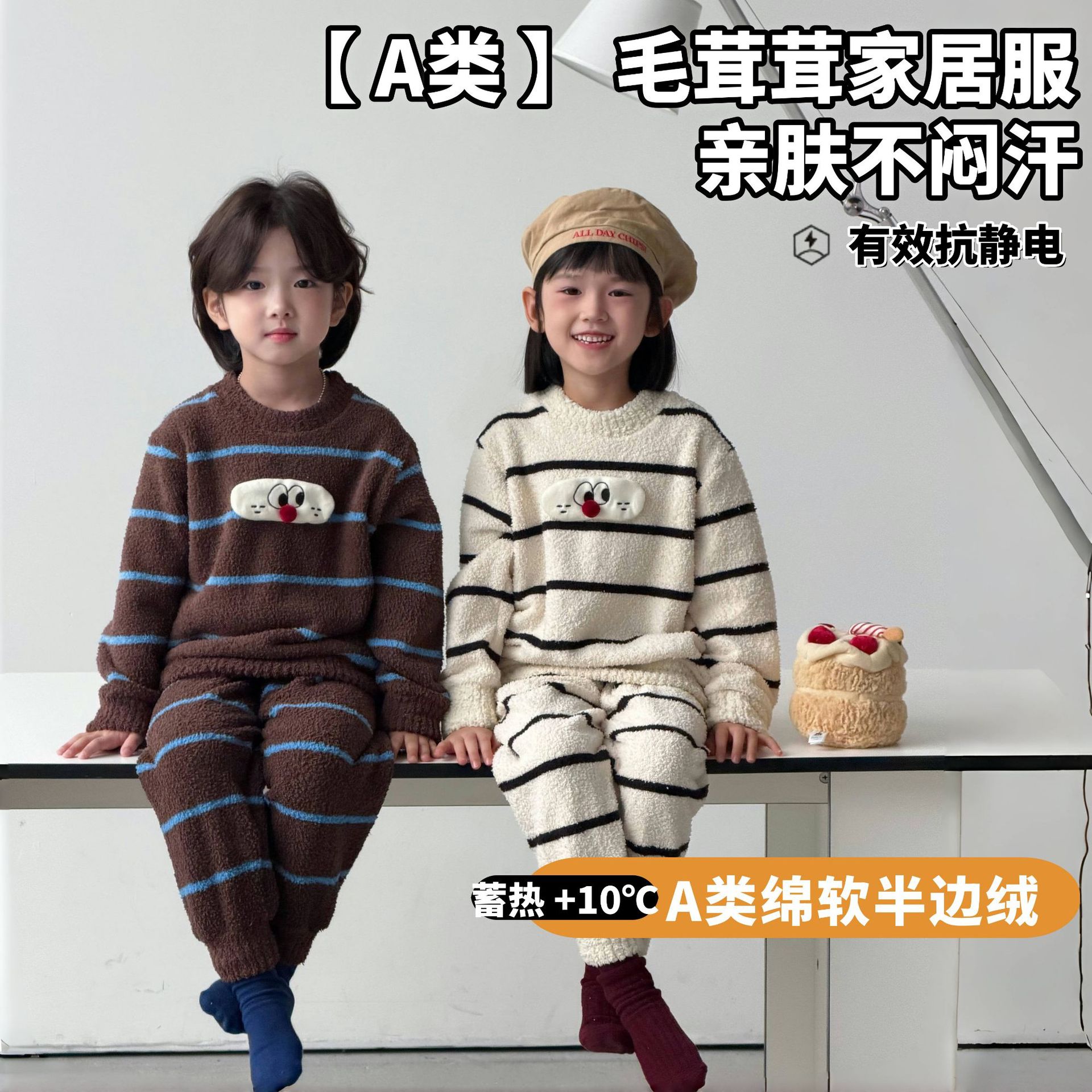 【79元起2套】秋冬儿童半边绒睡衣 男女童暖暖绒家居服套装