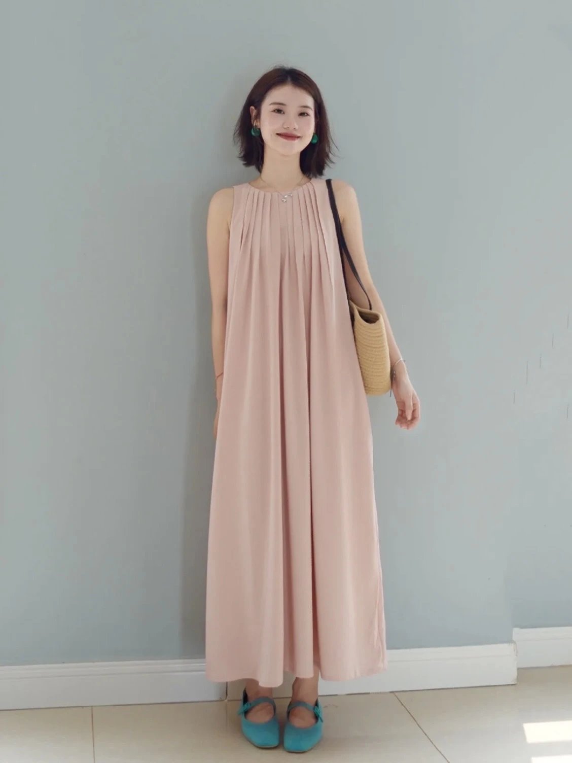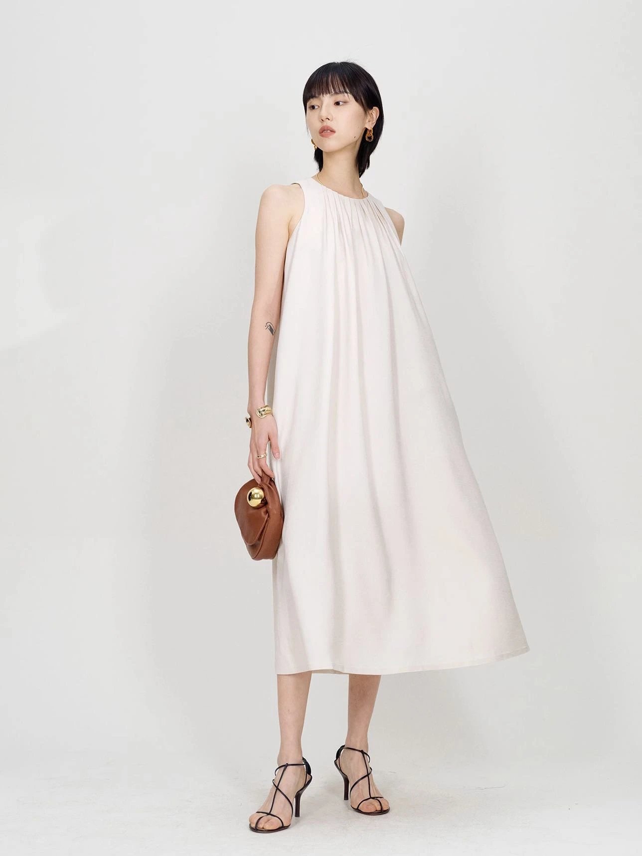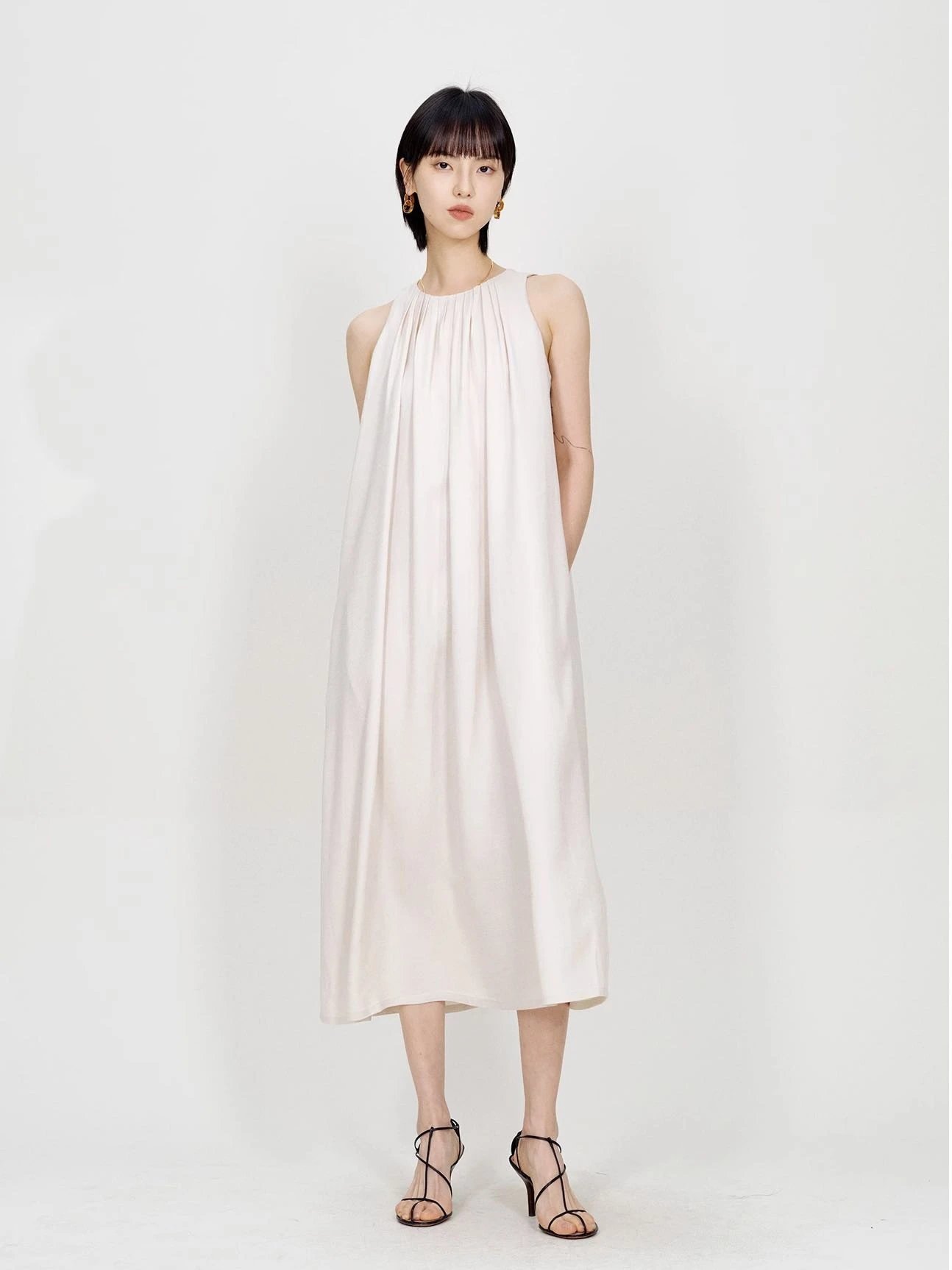 【商品品名】手工褶真丝莱赛尔无袖连衣裙