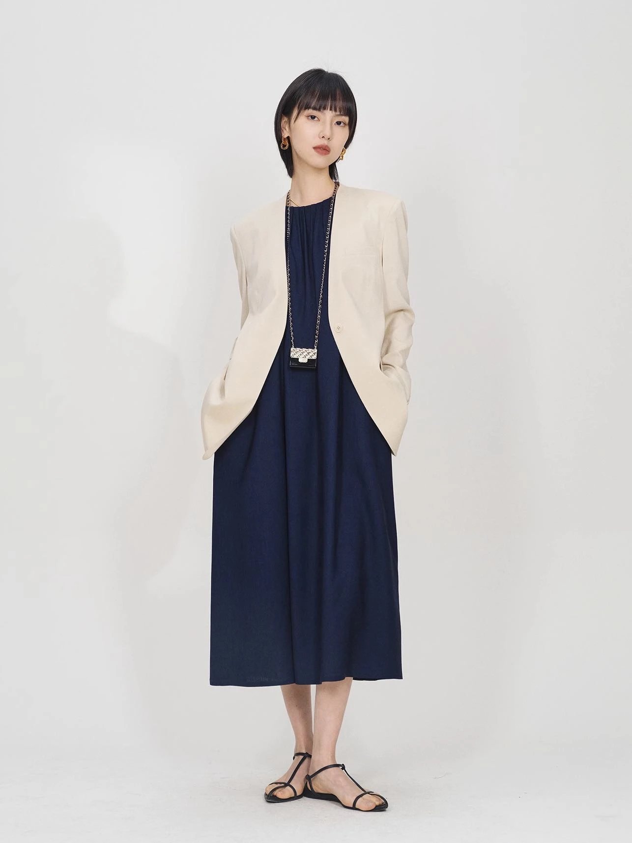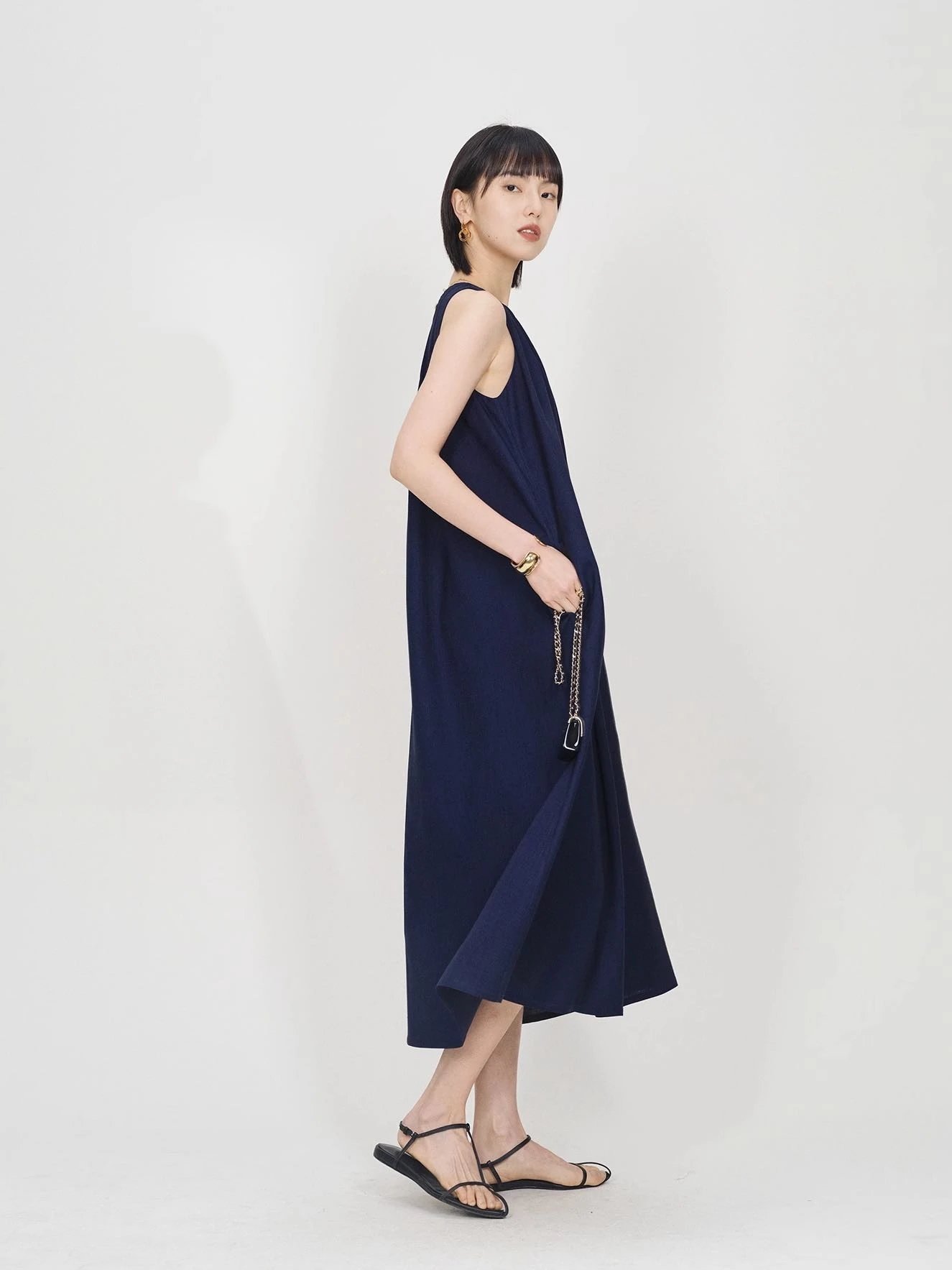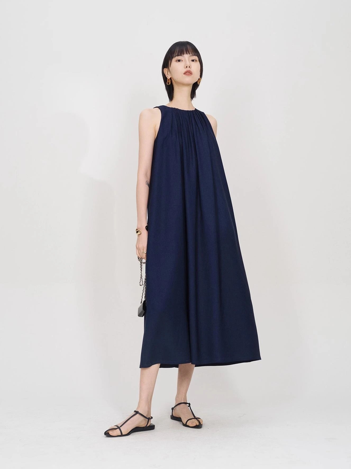 【商品品名】手工褶真丝莱赛尔无袖连衣裙