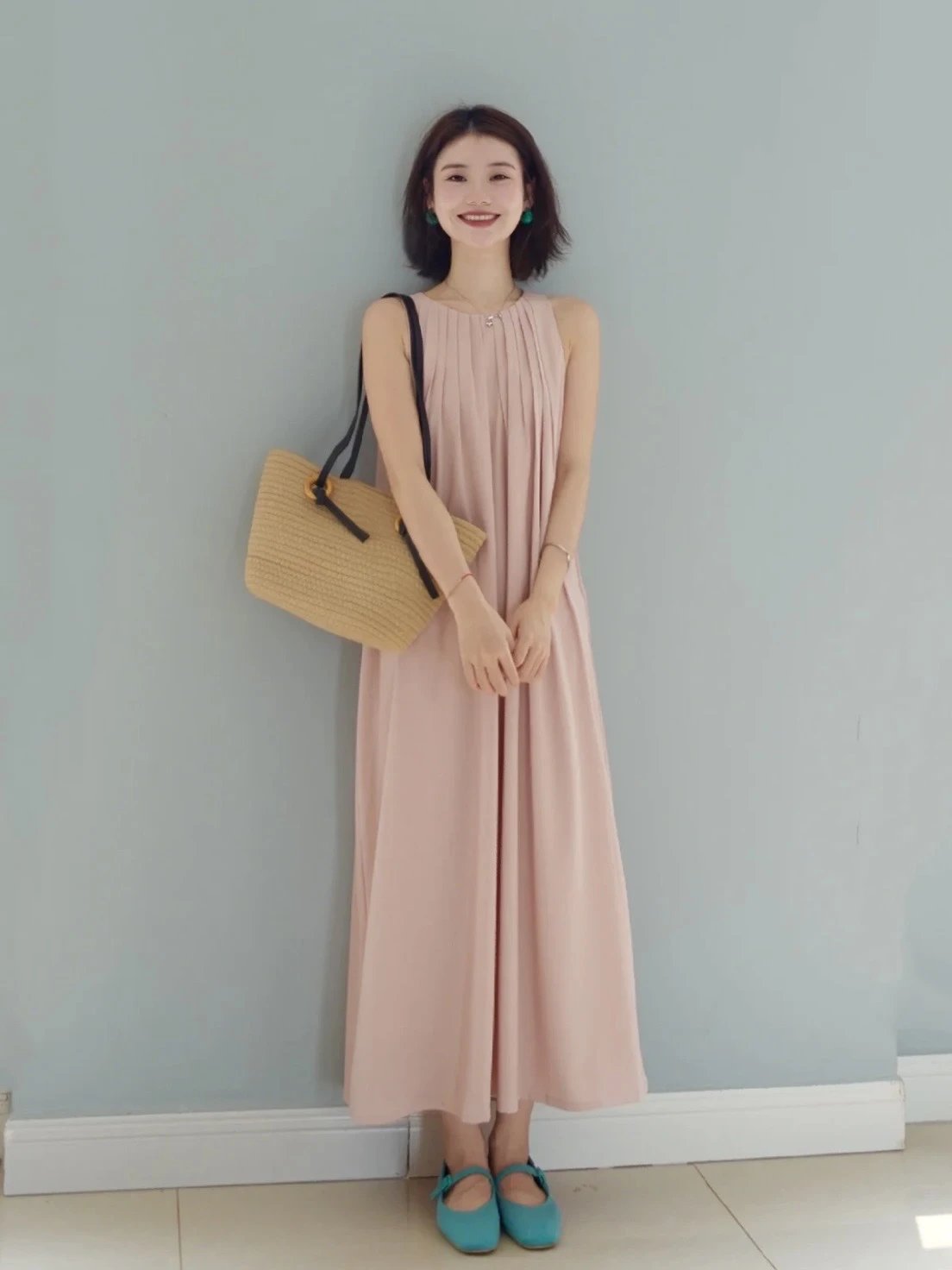 【山海风物市集】LPIUTY品牌直发!手工褶真丝莱赛尔无袖连衣裙 A0262008