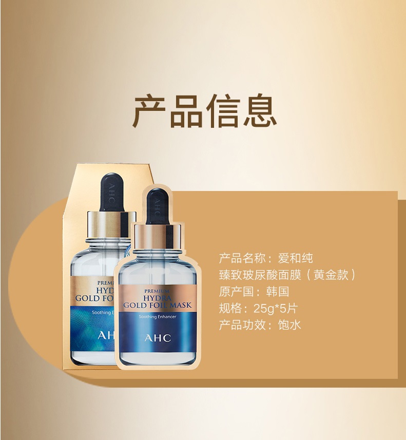 【一般贸易】 韩国爱和纯AHC臻致玻尿酸面膜(黄金款)25g*5片