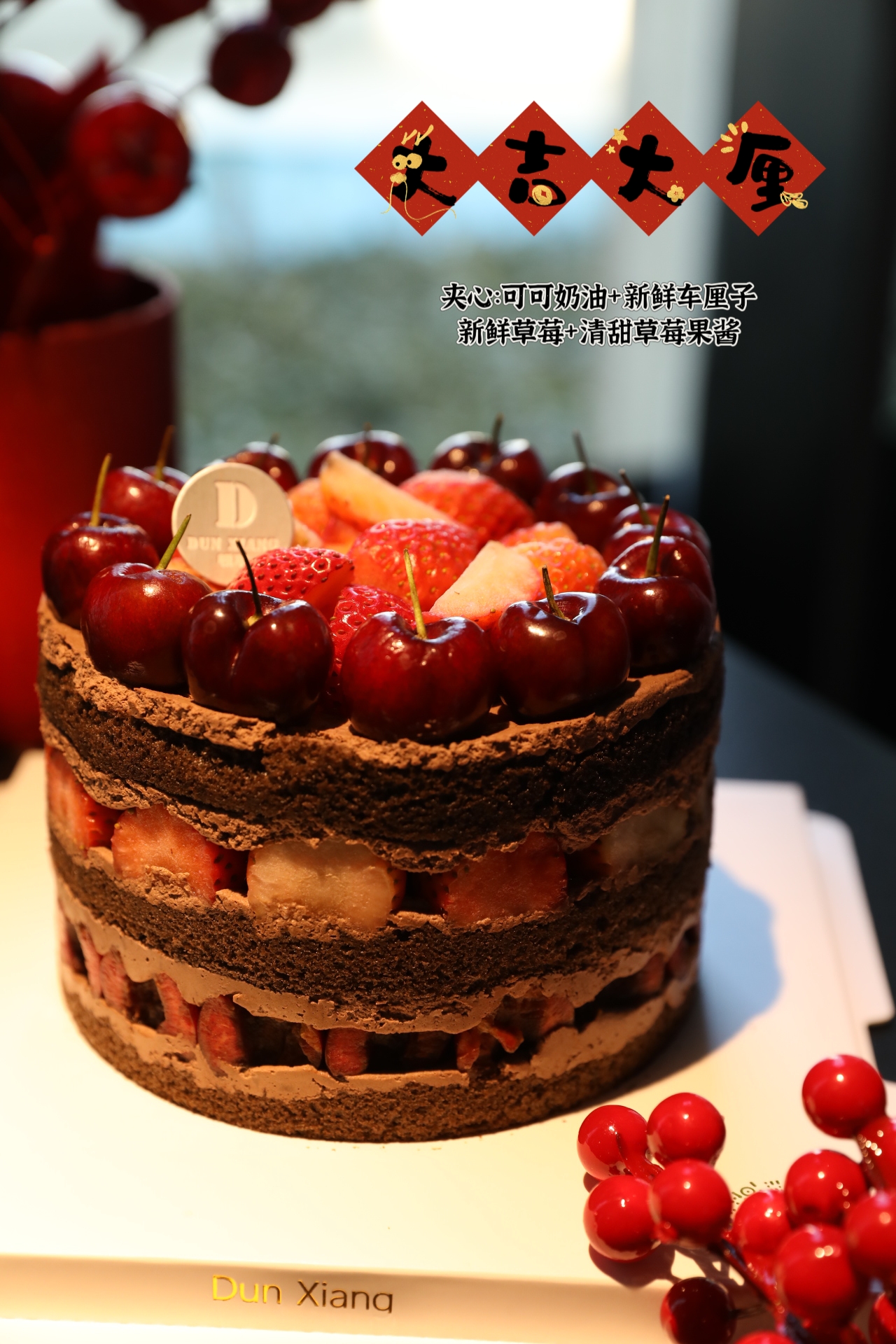 「顿享经典」草莓车厘子巧克力系列蛋糕—大吉大厘