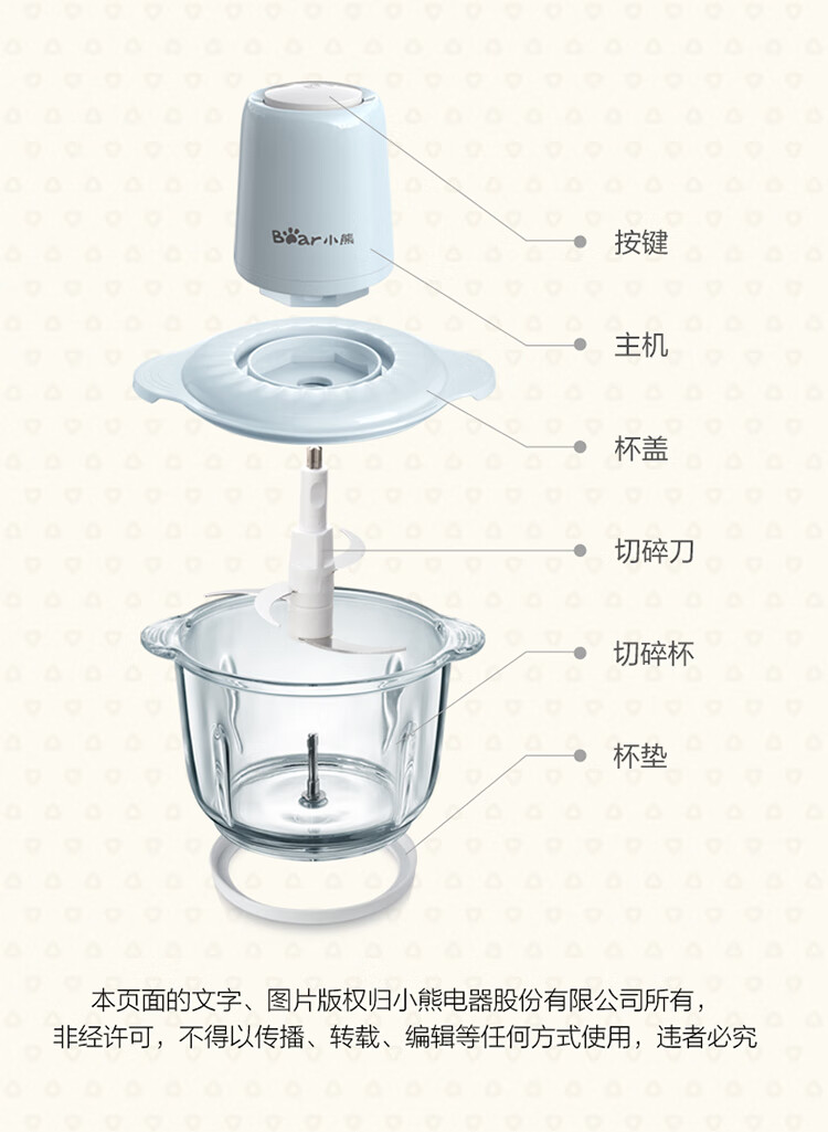 小熊(Bear) 绞肉机 家用电动搅拌机绞馅机切碎肉机辅食料理机绞菜打蒜机切碎机QSJ-C03B1