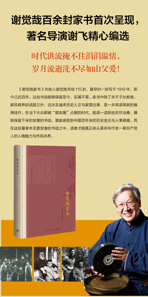 “烽火连三月,家书抵万金!” 从晚清秀才到民国教师,从同盟会骨干到“延安五老”,谢觉哉先生的一生历尽了中国现代史的苦难与艰辛。奔波一生,劫波度尽,两位夫人,儿女成群,是革命者,也是有担当的丈夫、有爱心的慈父。时代洪流掩不住涓涓温情,岁月流逝洗不尽如山父爱! 内容简介 谢觉哉先生,“延安五老”之一,是很早参加中国共产党的老一辈革命家。他1905年考取晚清秀才,参加革命前在湖南宁乡老家与夫人何敦秀育有四男三女;1937年9月在甘肃兰州八路军办事处与王定国结为伉俪,育有五男二女,并长年抚养亲友们的十多名子女。 本书为谢飞老师近年潜心整理其父谢觉哉先生的家书选编,涵盖谢觉哉先生从20世纪20年代到20世纪60年代的115封家书。书稿内容分为三个部分,第一辑是1920到1960年代,谢觉哉写给宁乡老家夫人何敦秀及子女的书信,文字生动,情感真挚,书信中除了表达对家乡妻子的惦念、对子女的谆谆教导与对乡亲故友的感怀之外,还涉及了当时的历史事件与时代变迁,包括军阀混战、延安生活以及建国后的土改政策等,具有一定的历史参考价值。第二辑是1950至1970年代谢觉哉先生写给王定国夫人及子女的书信,主要内容是夫妻之间的关爱、对子女的教育开导等,体现了老一辈革命家严于律己、以身作则的优良作风。书信中涉及读书、养生、提倡节俭等话题,展现了谢觉哉先生的生活态度以及为人处世的个人原则,为后人树立了榜样。第三辑是1950至1960年代谢觉哉写给家乡干部和友人的书信,通过书信了解家乡的情况与变化,对于当地干部的浮夸风等不良行为多有批评教育。全书百余封书信,纵贯近半个世纪,集亲情、乡情于一体,也从一个家庭的变迁映射出一个时代的动荡与革新。 作者简介 谢觉哉(1884—1971),字焕南,别号觉哉,亦作觉斋。“延安五老”之一,著名的法学家和教育家、人民司法制度的奠基者。1884年出生,湖南宁乡人。1925年加入中国共产党。1933年,他在中央苏区任内务部长时,主持和参加起草了中国红色革命政权很早的《劳动法》、《土地法》等法令和条例。1934年参加长征后,历任陕甘宁边区内务部部长、参议会副议长等职,制定与推行了《选举条例》、《宪法草案》等法令。新中国成立后,历任内务部部长、最高人民法院院长等职。曾出版著述《不惑集》、《谢觉哉杂文选》、《一得书》、《学语集锦》等;20世纪80年代整理出版《谢觉哉日记》、《谢觉哉文集》《谢觉哉诗集》等。 谢飞,谢觉哉之子,1942年出生于延安。1965年毕业于北京电影学院导演系。后留校任教,先后任副院长、教授,并担任中国电影家协会副主席。导演电影作品包括《我们的田野》、《湘女萧萧》、《本命年》、《香魂女》、《黑骏马》、《益西卓玛》等,多次荣获国内外电影大奖。
