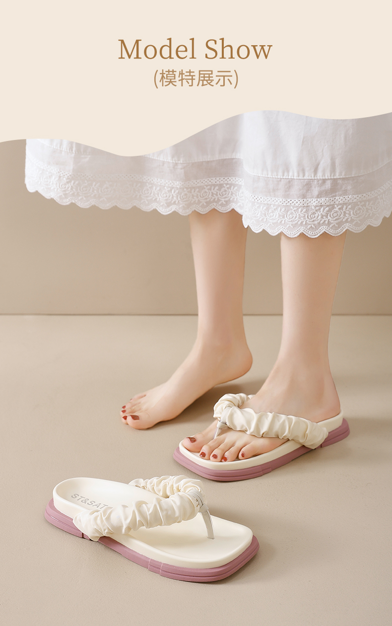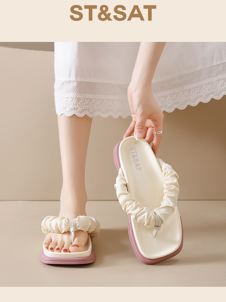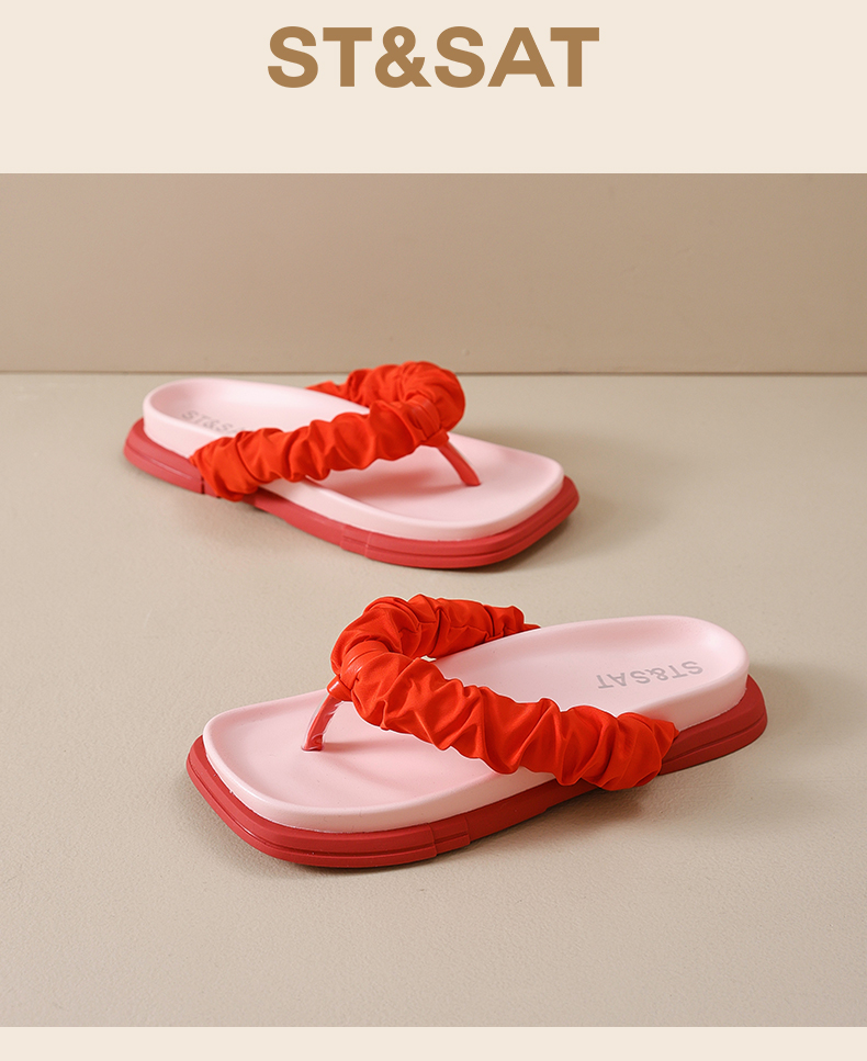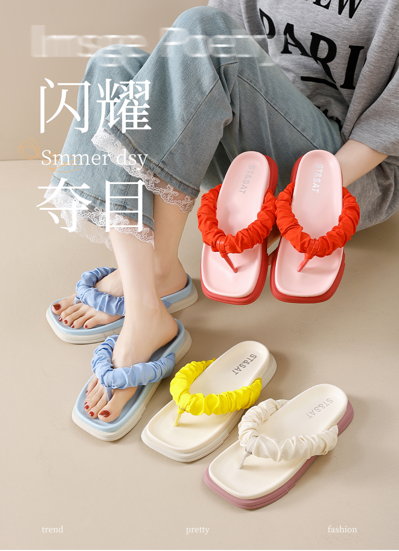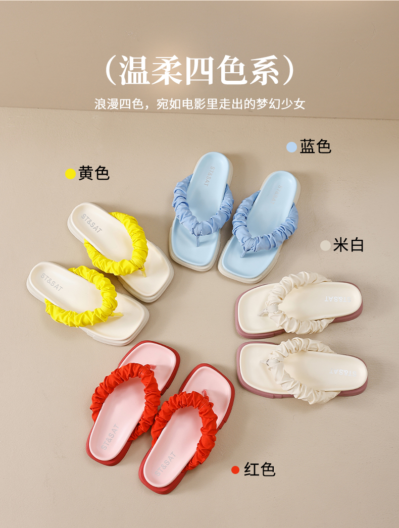星期六多彩褶皱夹趾厚底拖鞋SSD2110T94