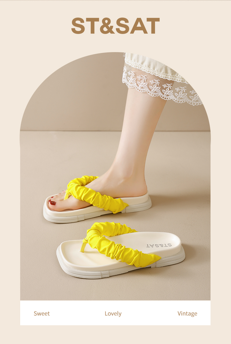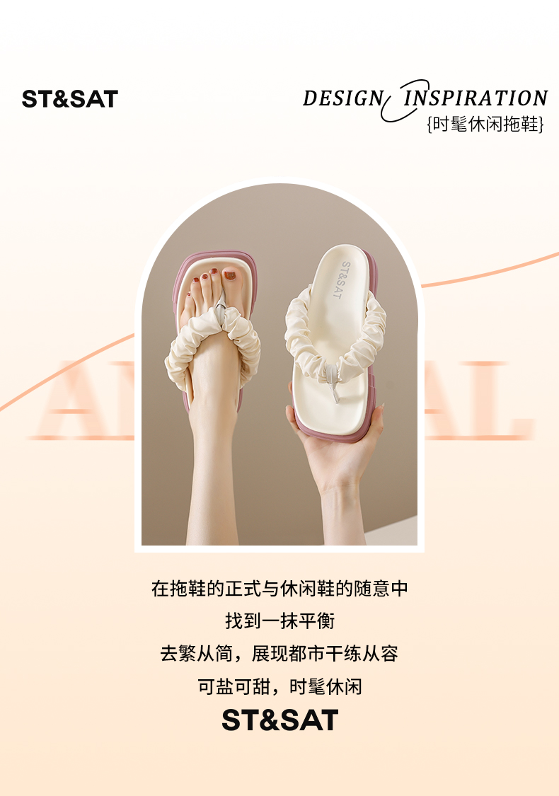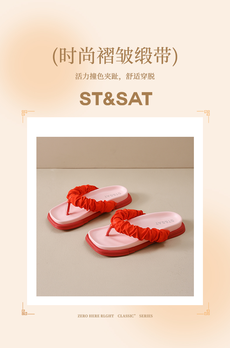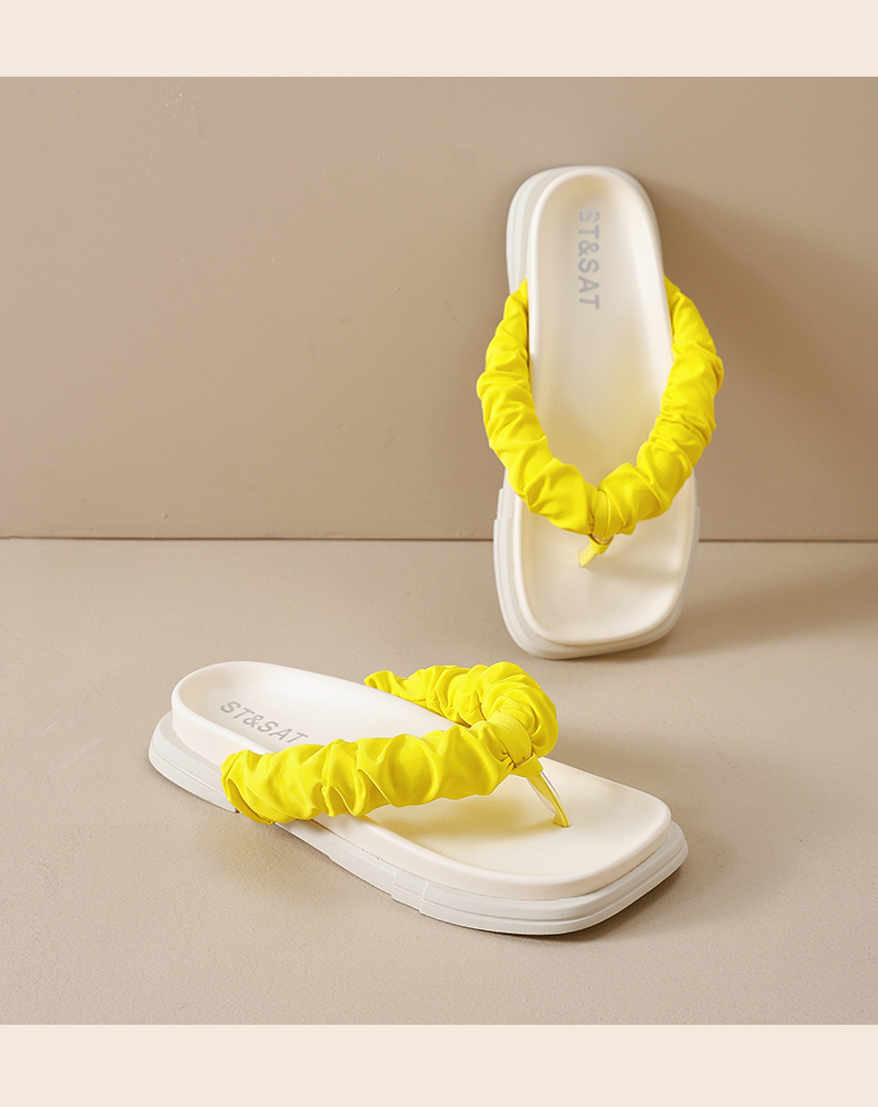 星期六多彩褶皱夹趾厚底拖鞋SSD2110T94