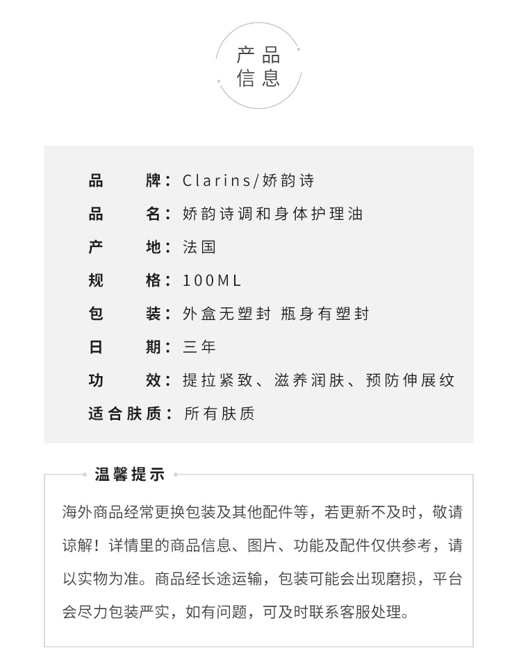 Clarins/娇韵诗 调和身体护理油30ml/100ml