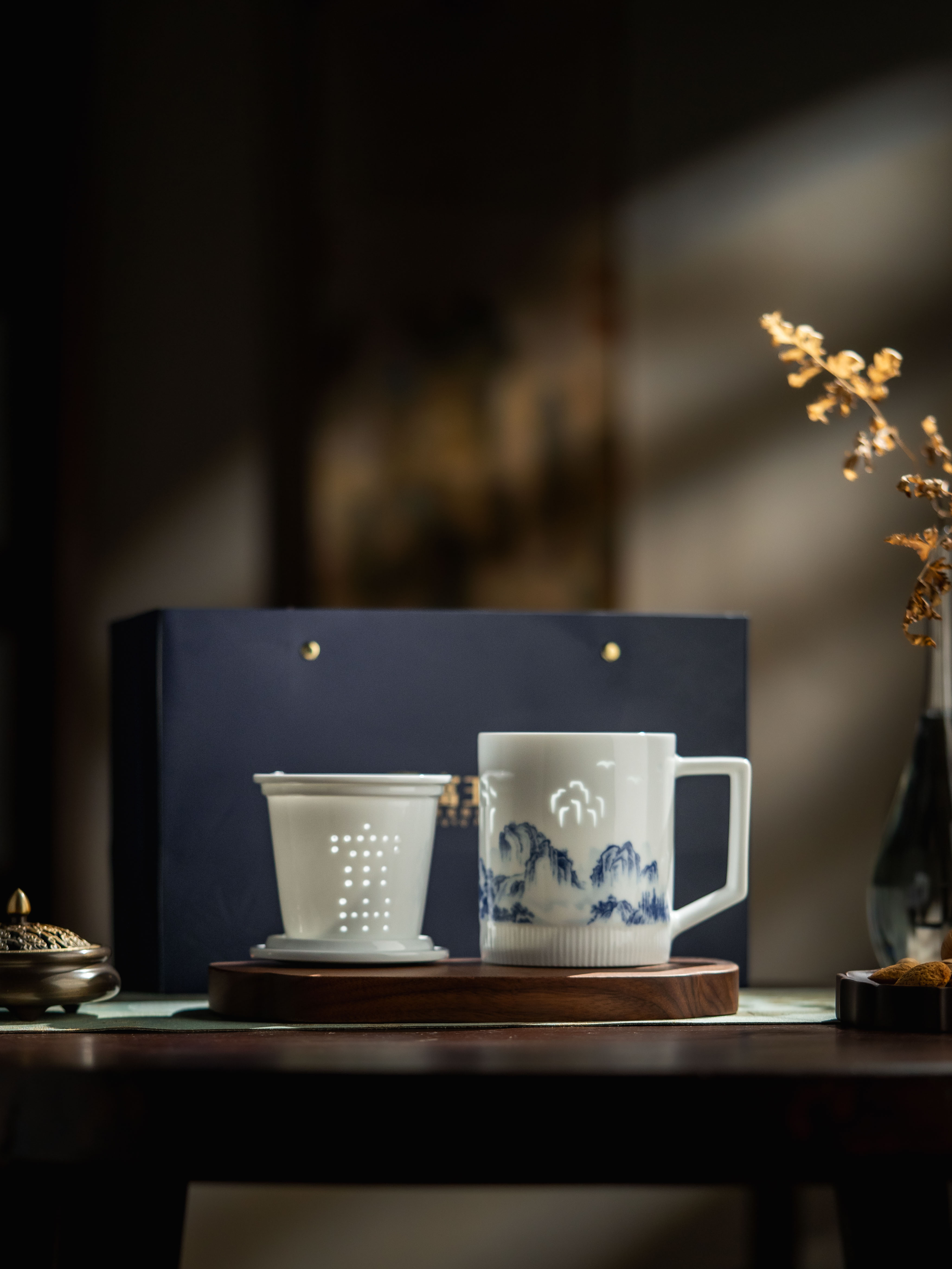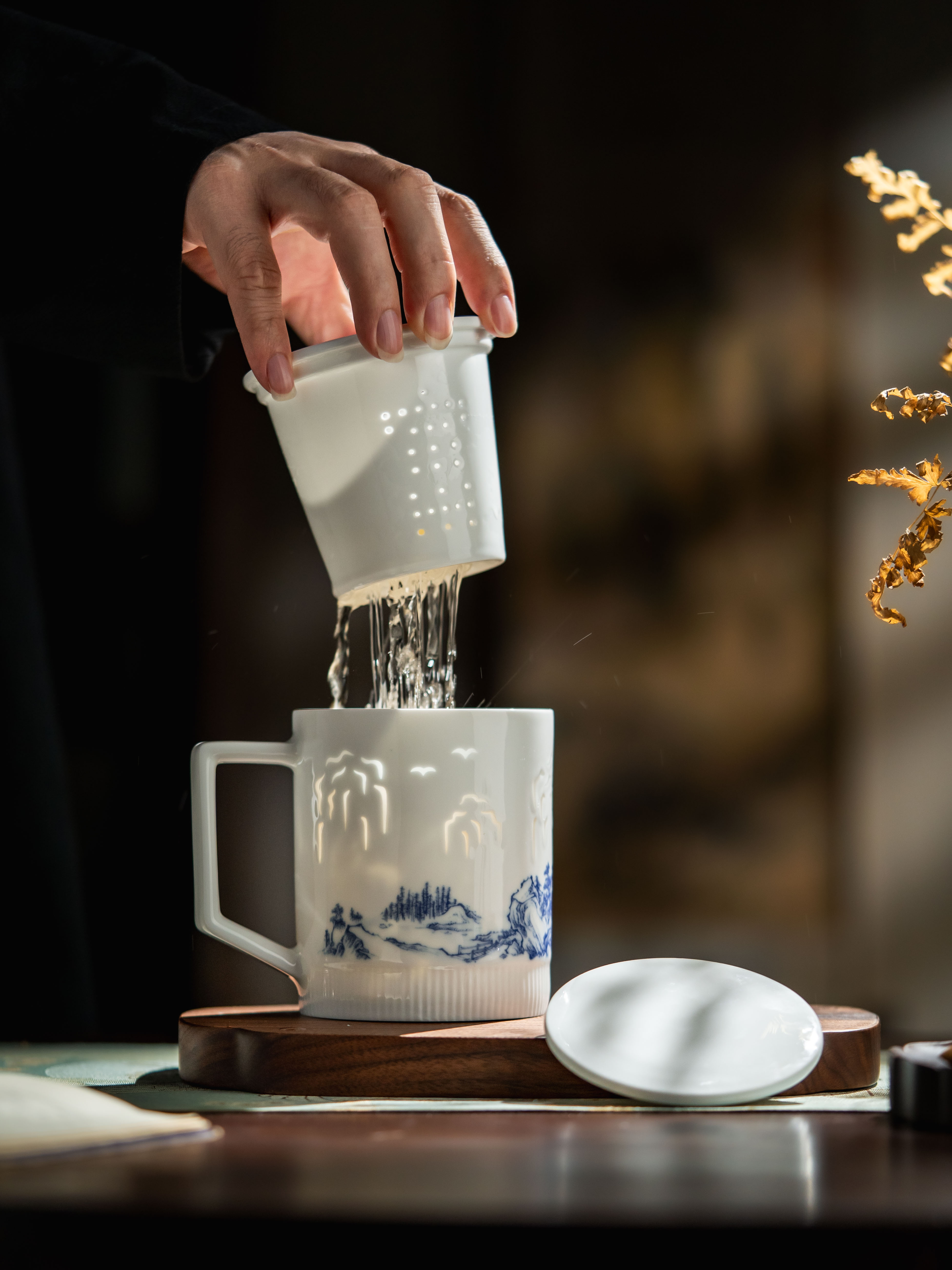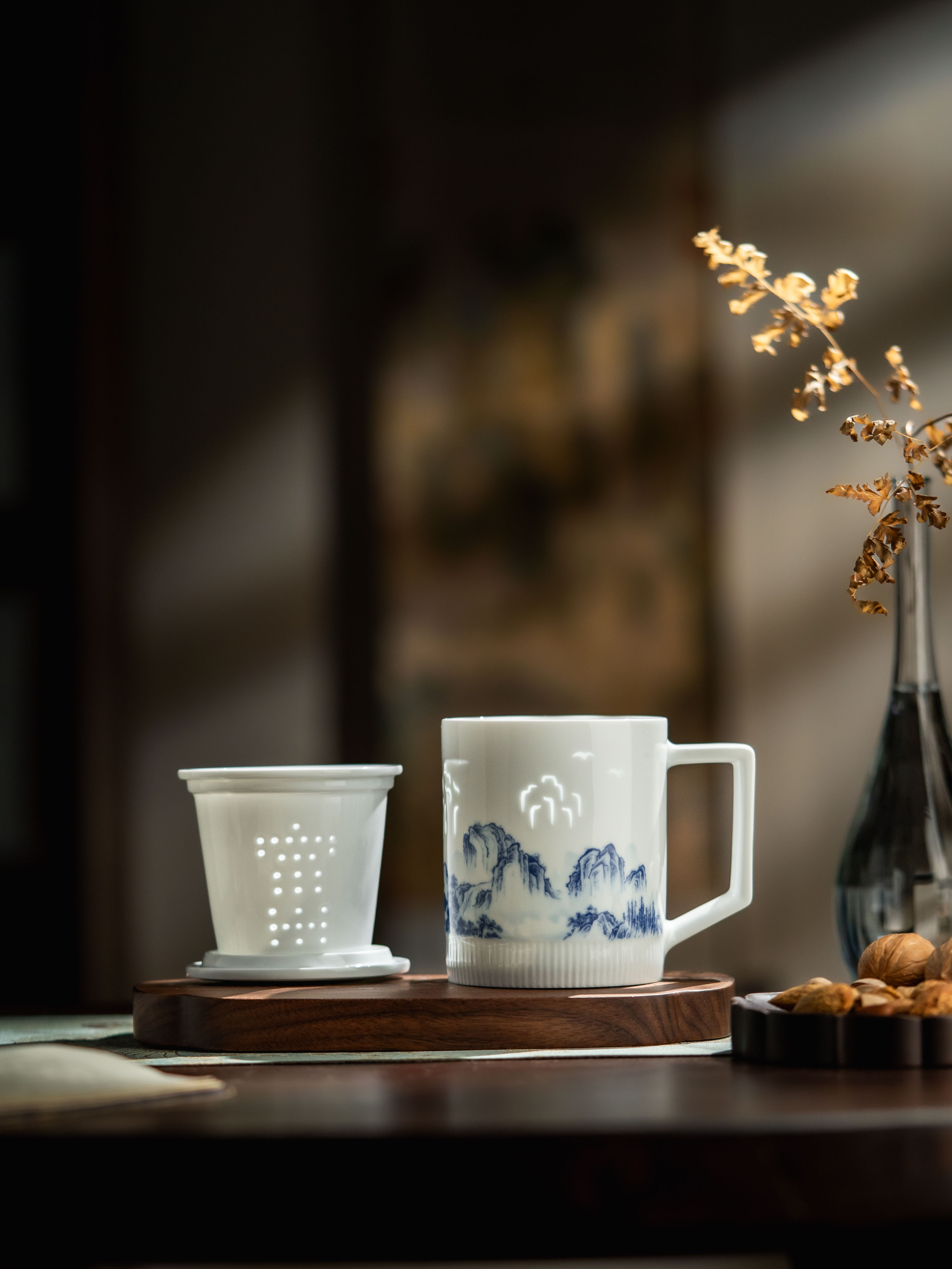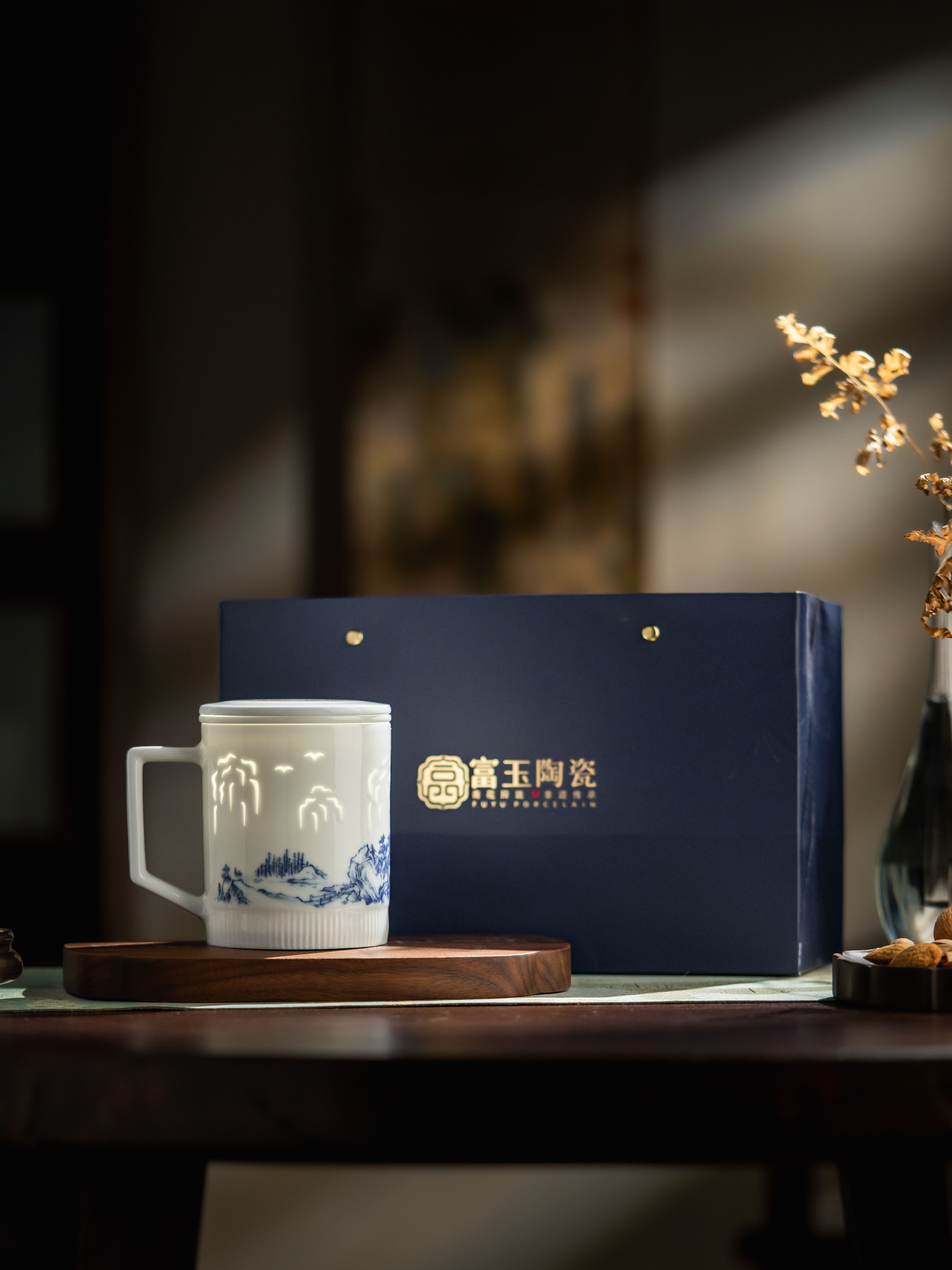 新品 富玉 | 景德镇陶瓷溪山清韵茶漏杯带盖水杯