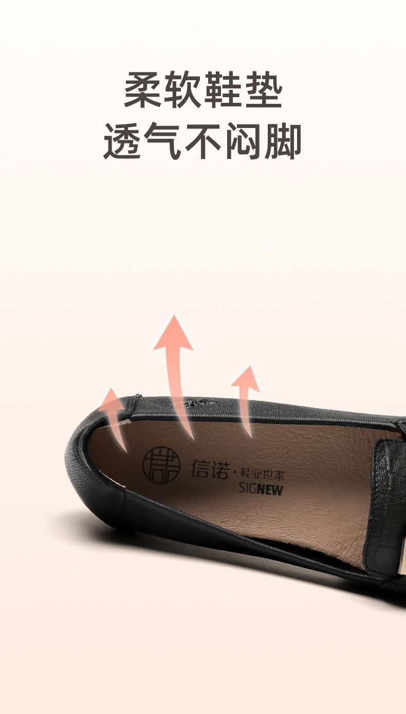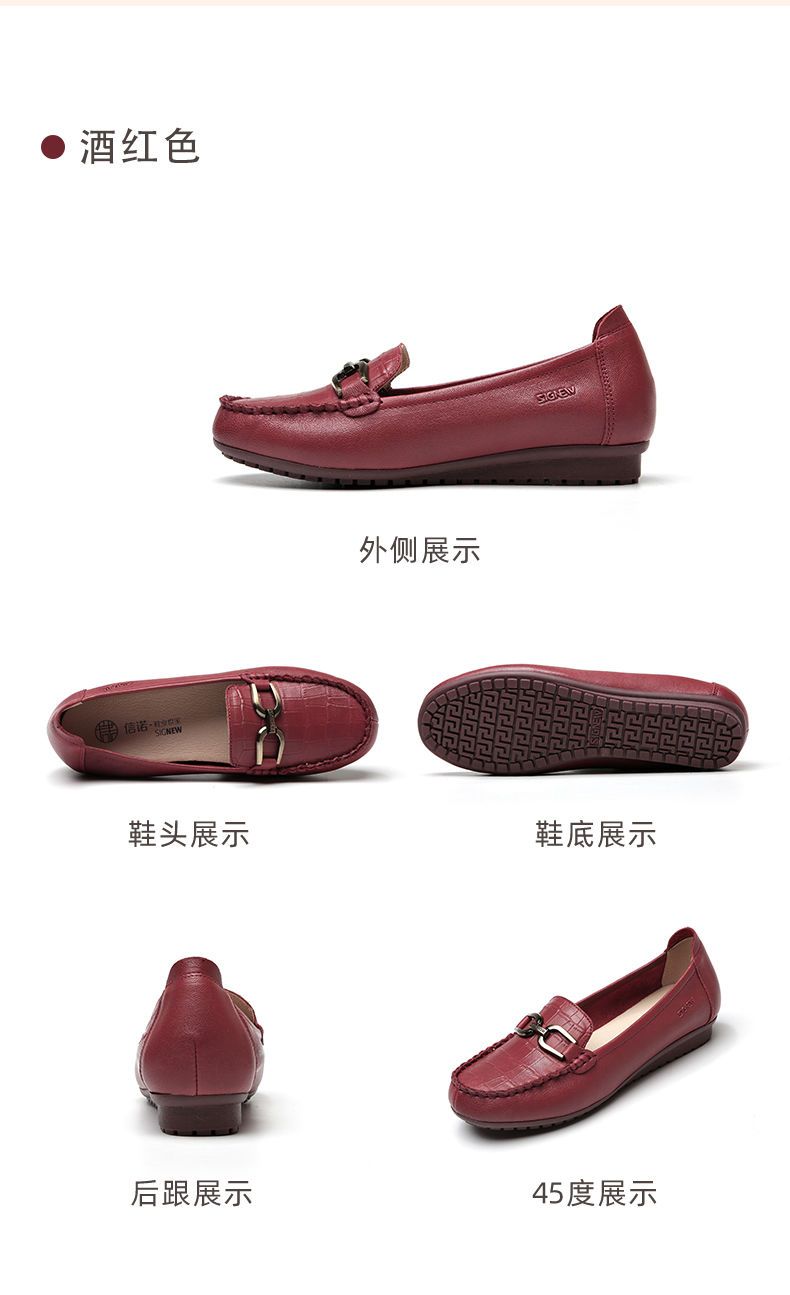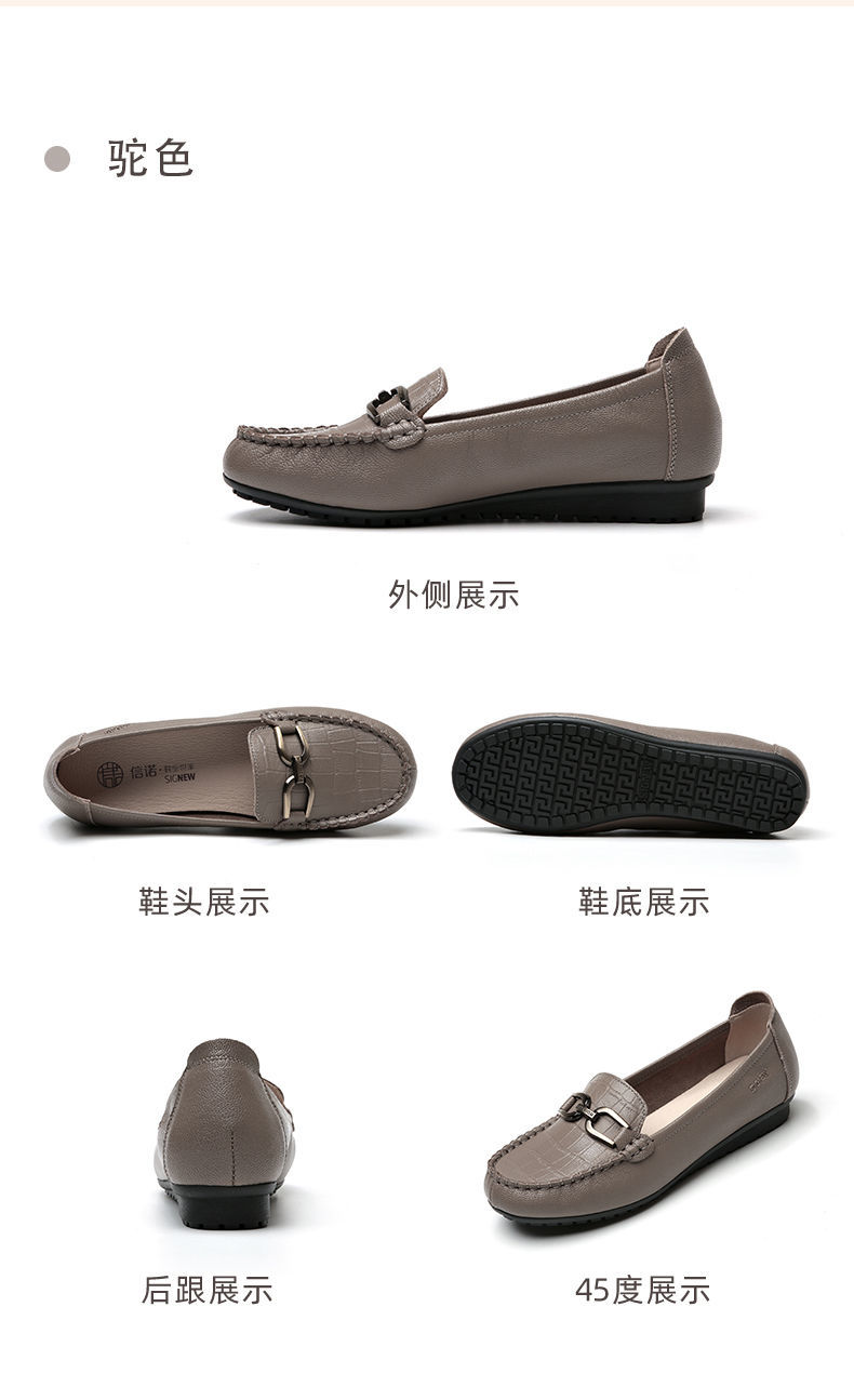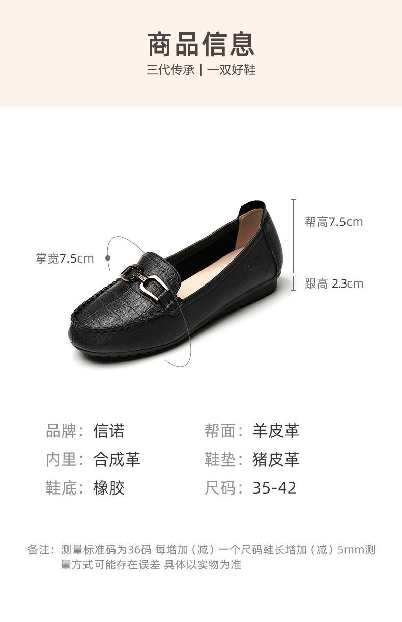 信诺真皮头层牛皮休闲舒适小皮鞋女单鞋乐福鞋妈妈鞋奶奶鞋送礼鞋23C2502-12