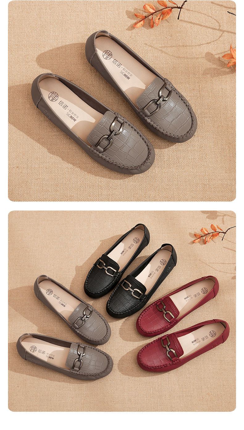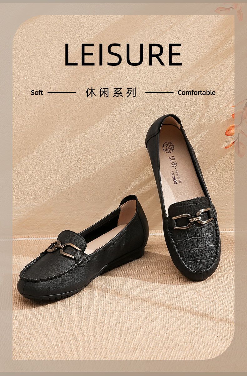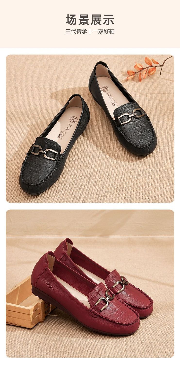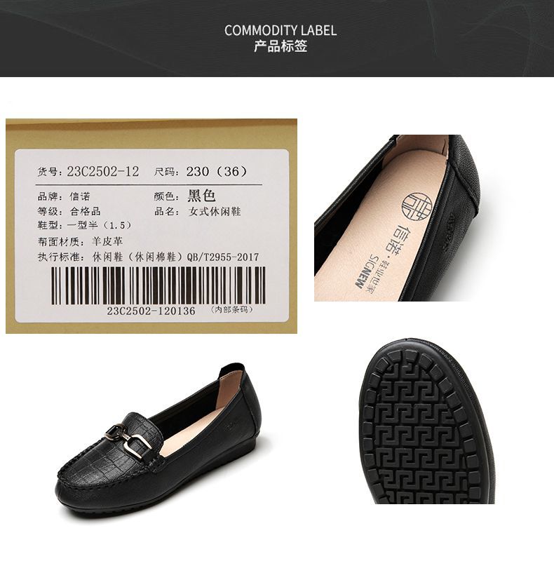 信诺真皮头层牛皮休闲舒适小皮鞋女单鞋乐福鞋妈妈鞋奶奶鞋送礼鞋23C2502-12