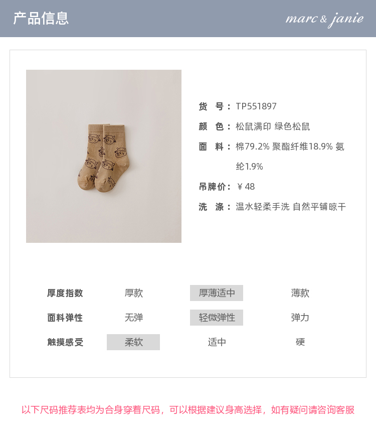 马克珍妮男童四季穿露营松鼠短袜2025年新款551897