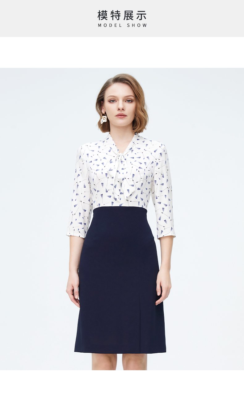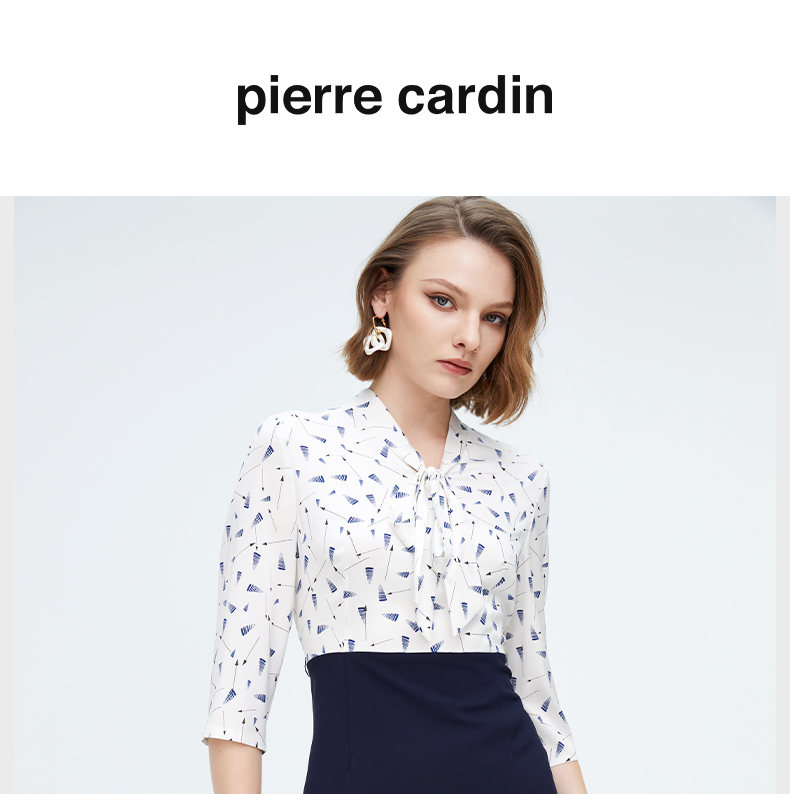 皮尔卡丹女装轻商务简约百搭通勤飘带领衬衫P4158E4074W3