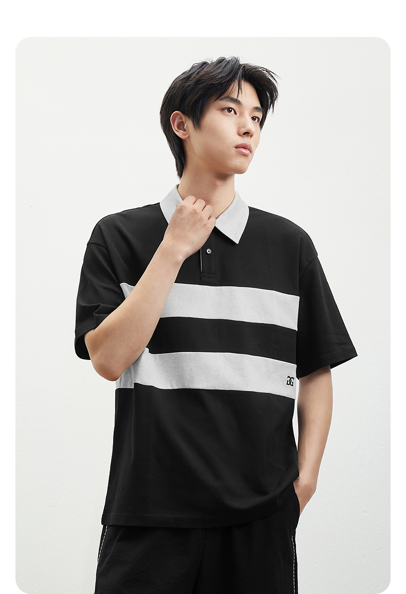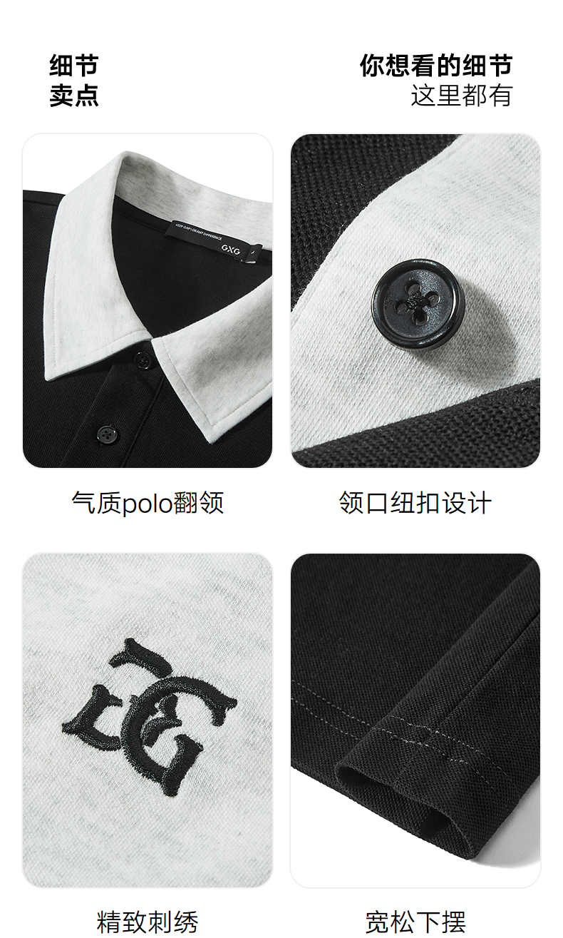 2025年夏季热卖GXG男装休闲基础简约撞色拼接翻领短袖Polo衫男