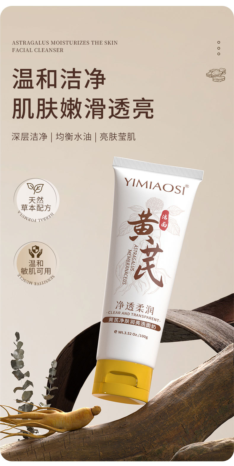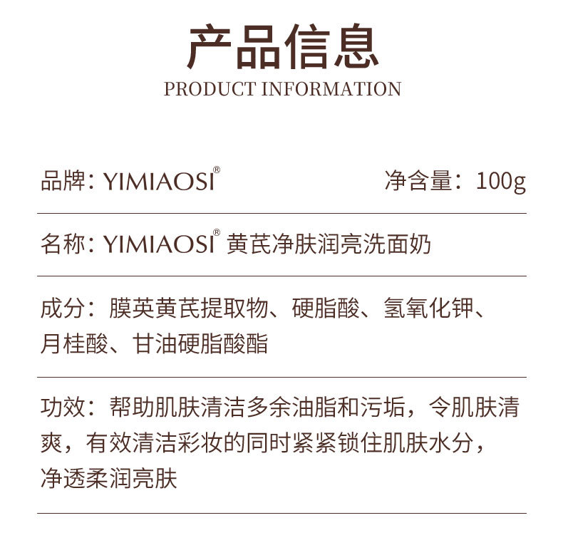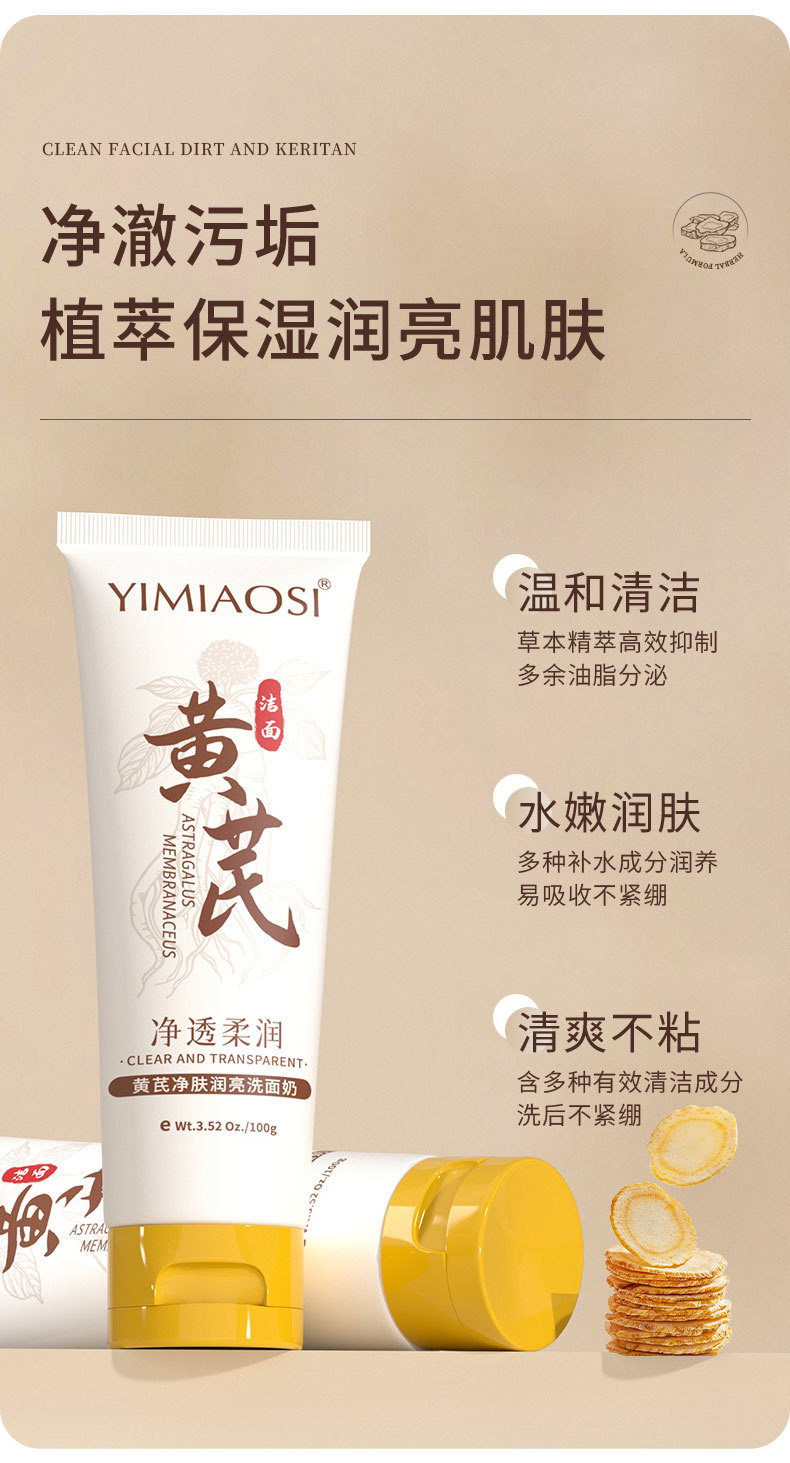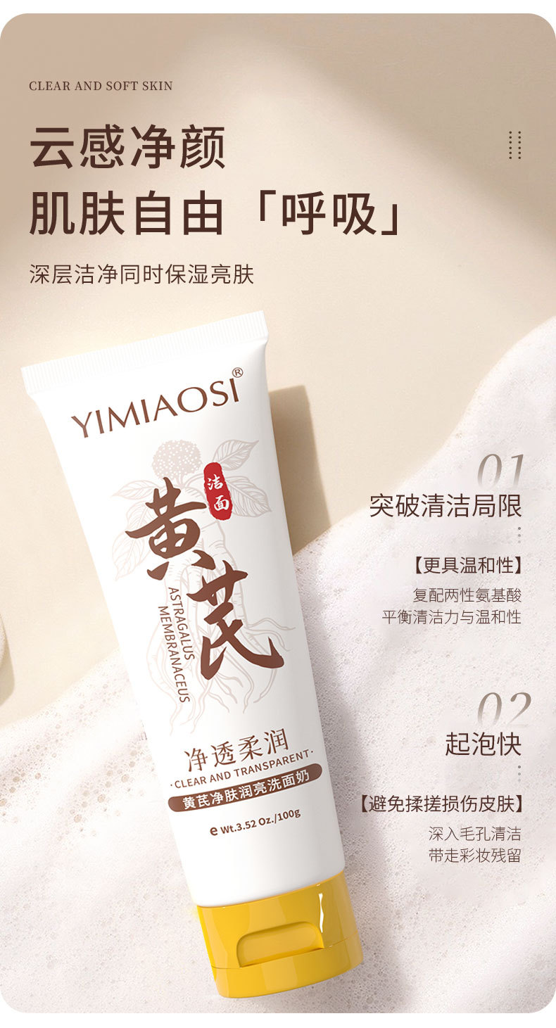 「限时特惠!拍1发3,9.9到手3支」YIMIAOSI黄芪净肤润亮洗面奶100g单支 控油清洁泡沫洁面乳清洁