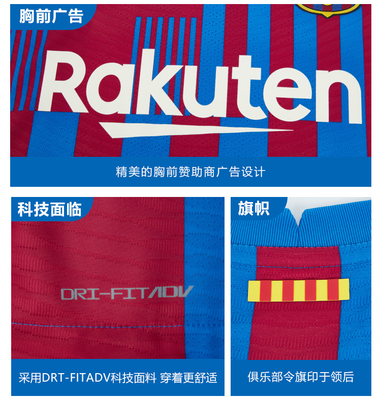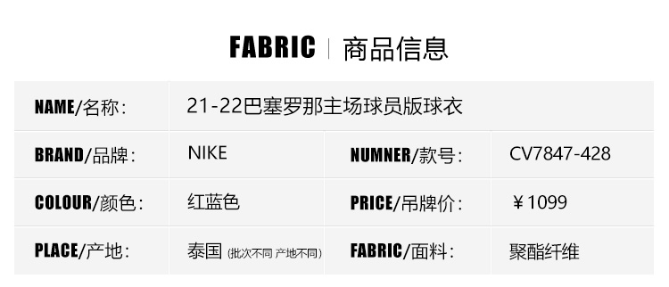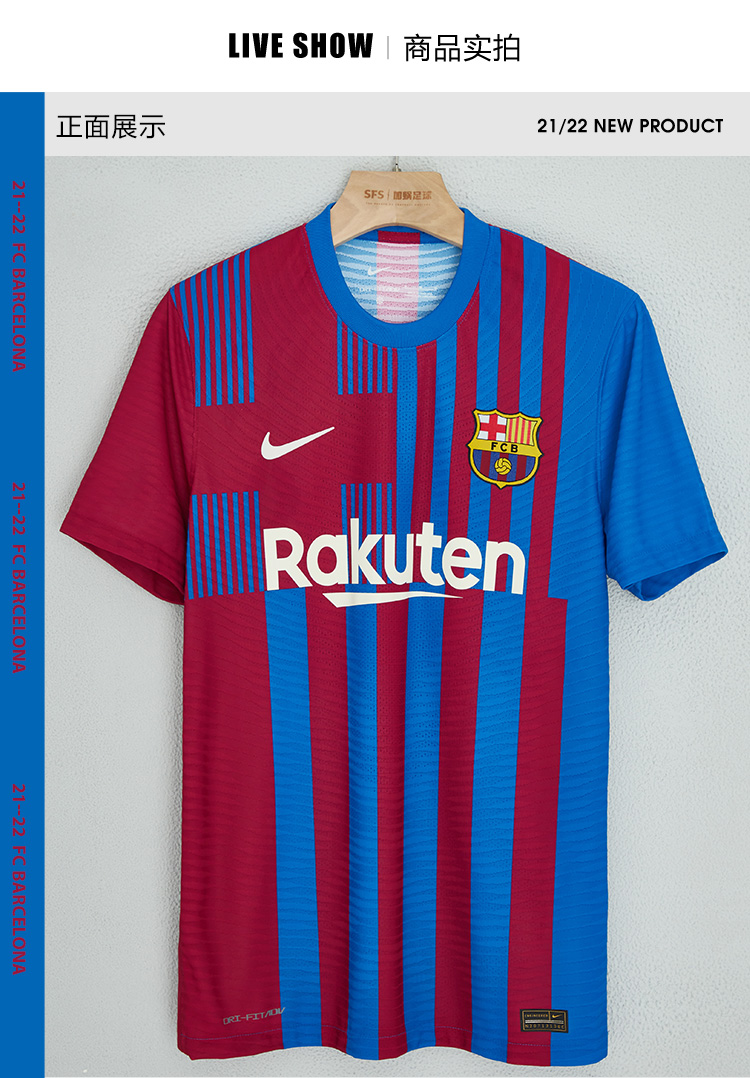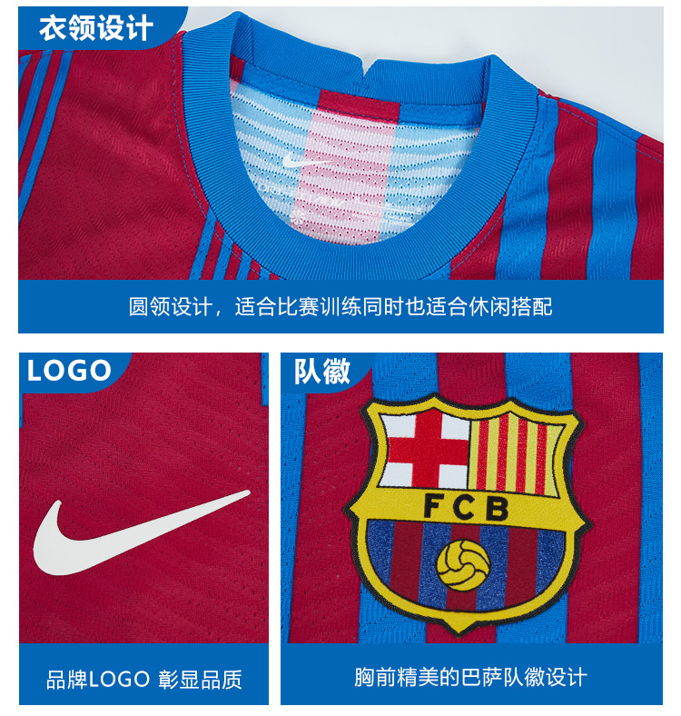 SFS耐克Nike正品 21-22巴萨主场球衣 球员版短袖足球服CV7847-428