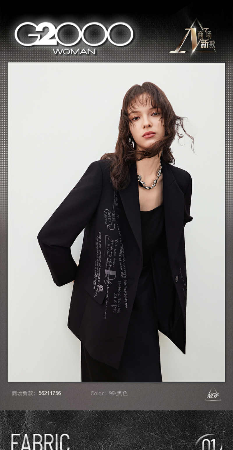 G2000【个性印花/多面弹性/商场新款】女装F W25时尚中性休闲西服56211756