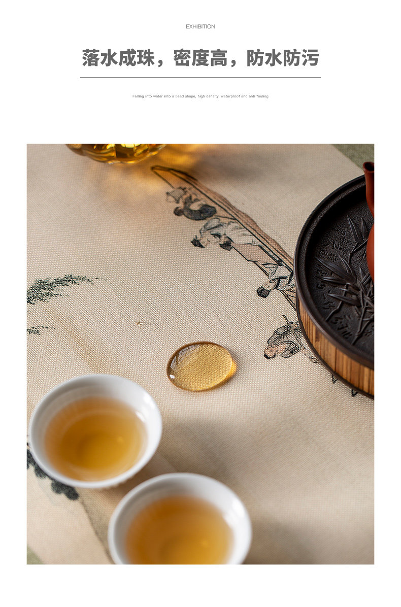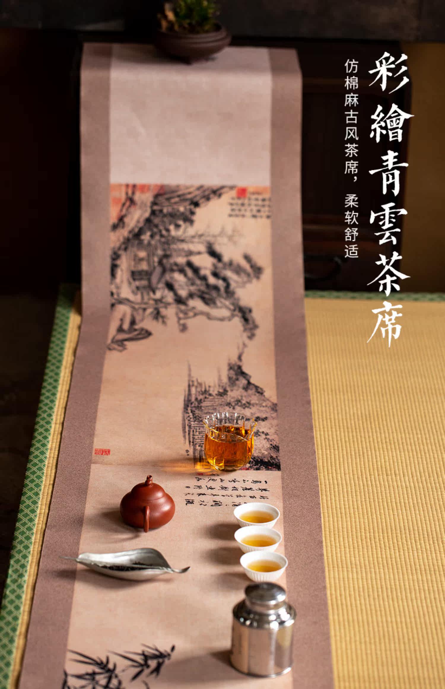 彩绘青云茶席/防水布禅意桌旗中式茶桌布茶垫茶艺功夫茶具茶道配件