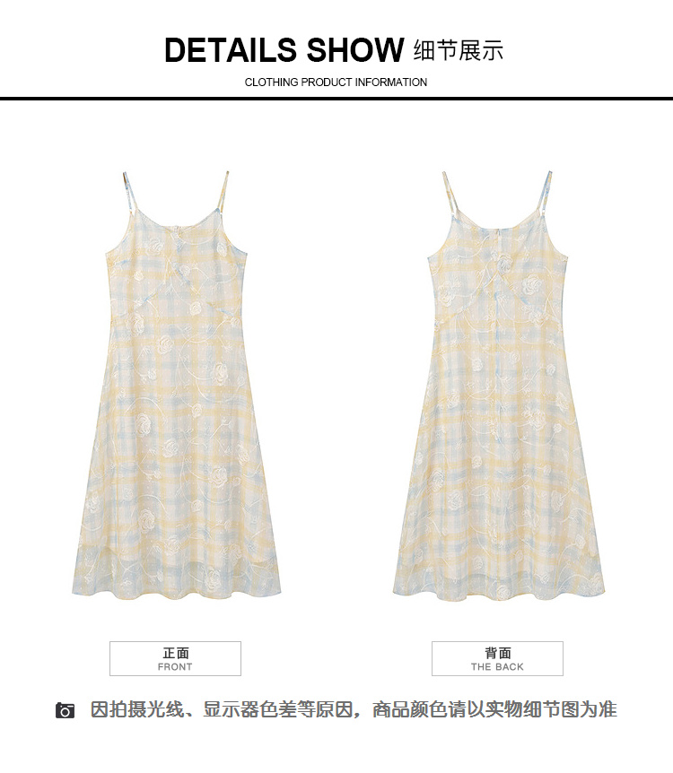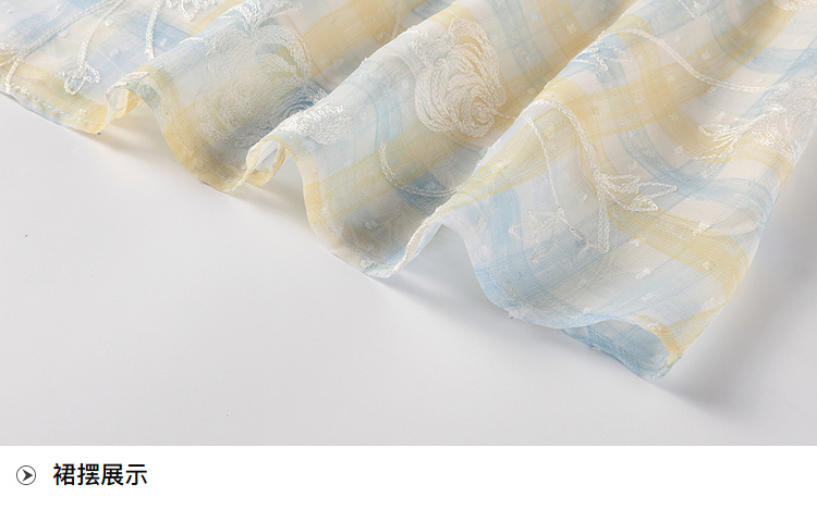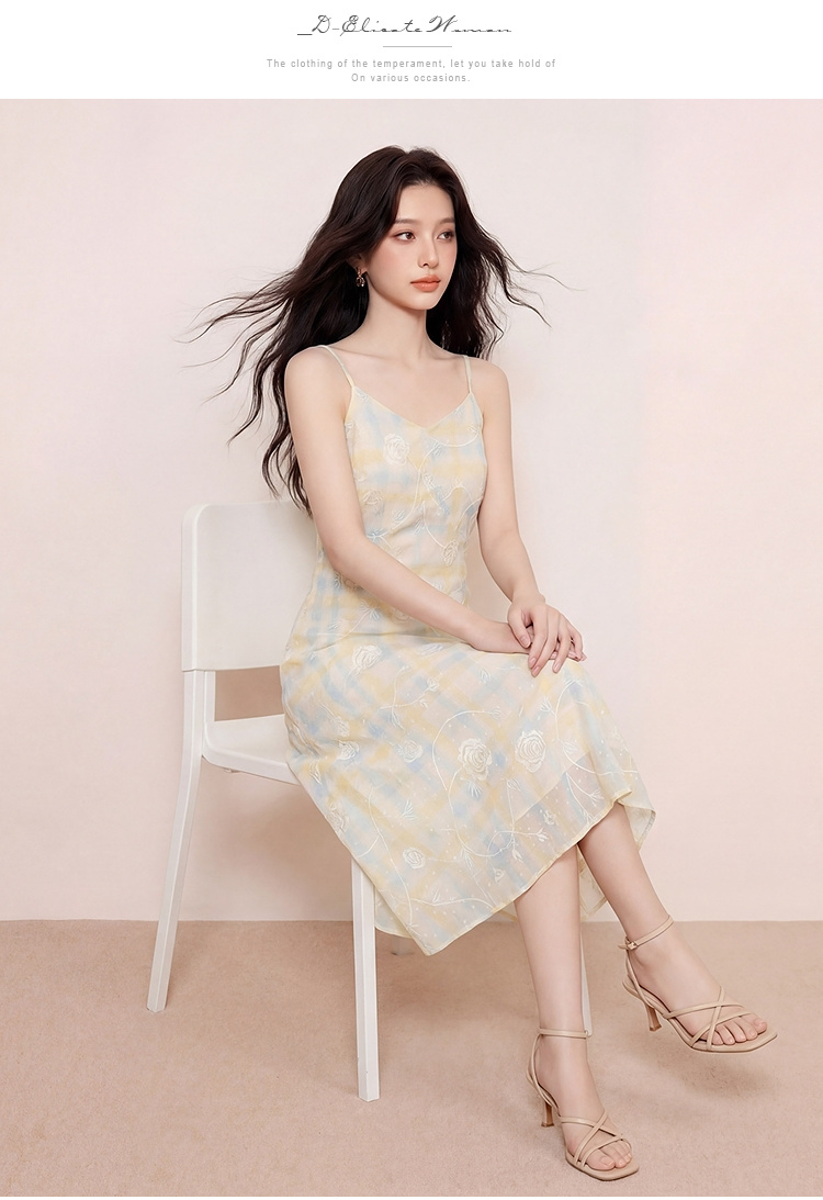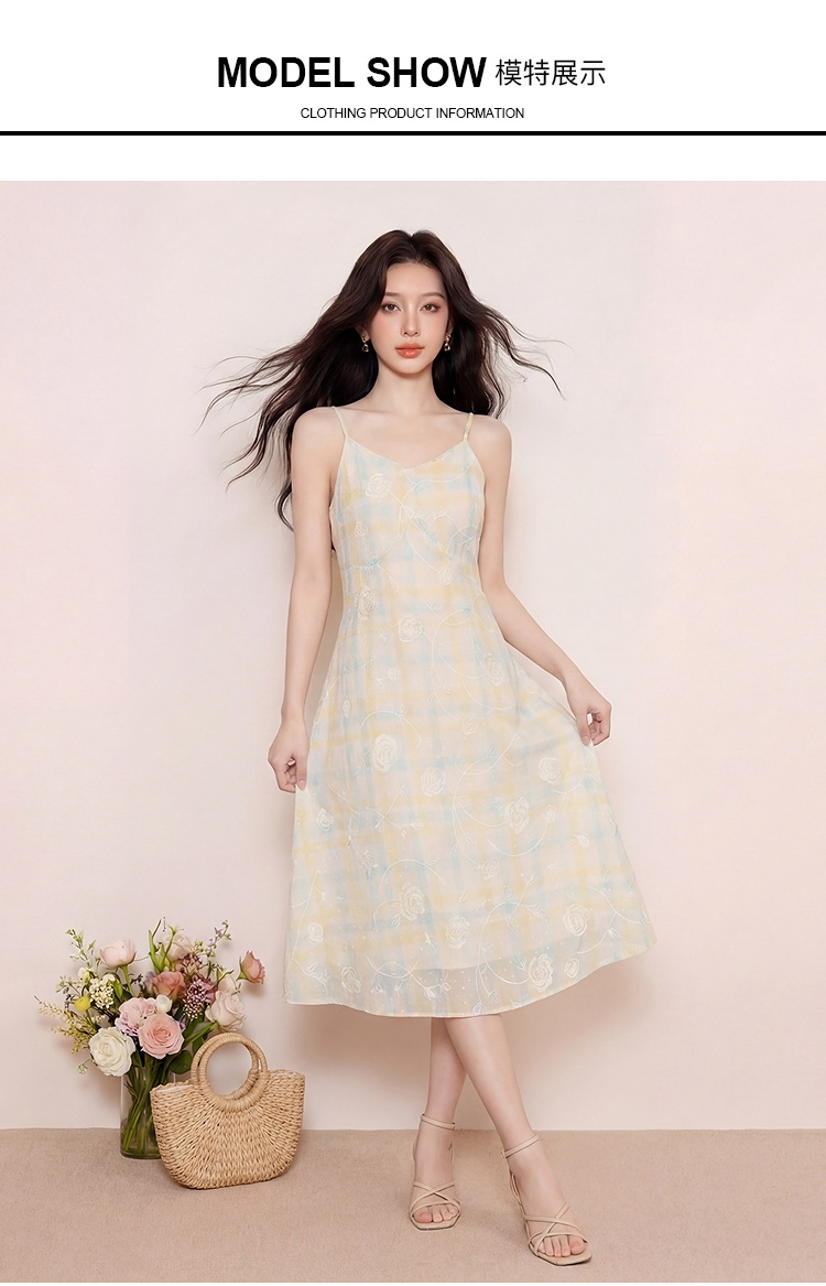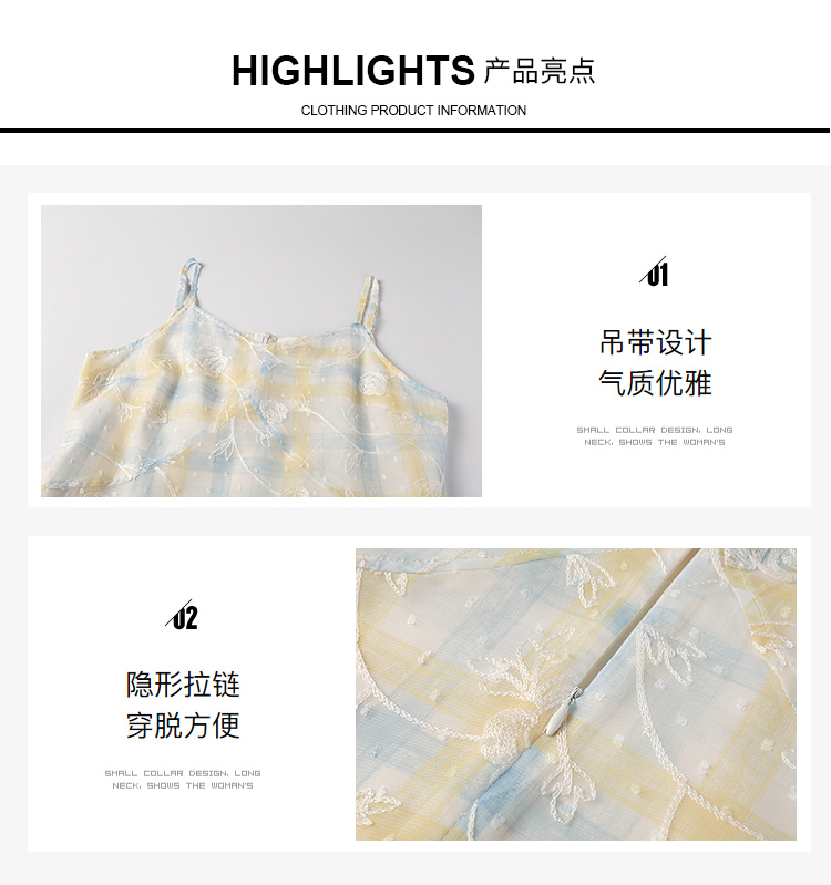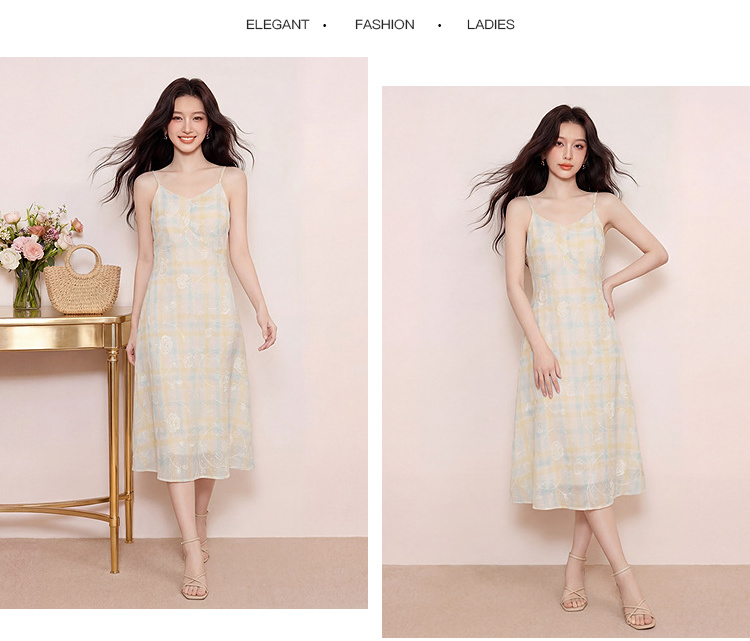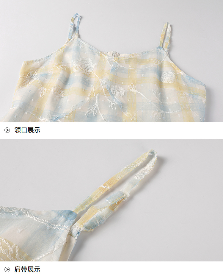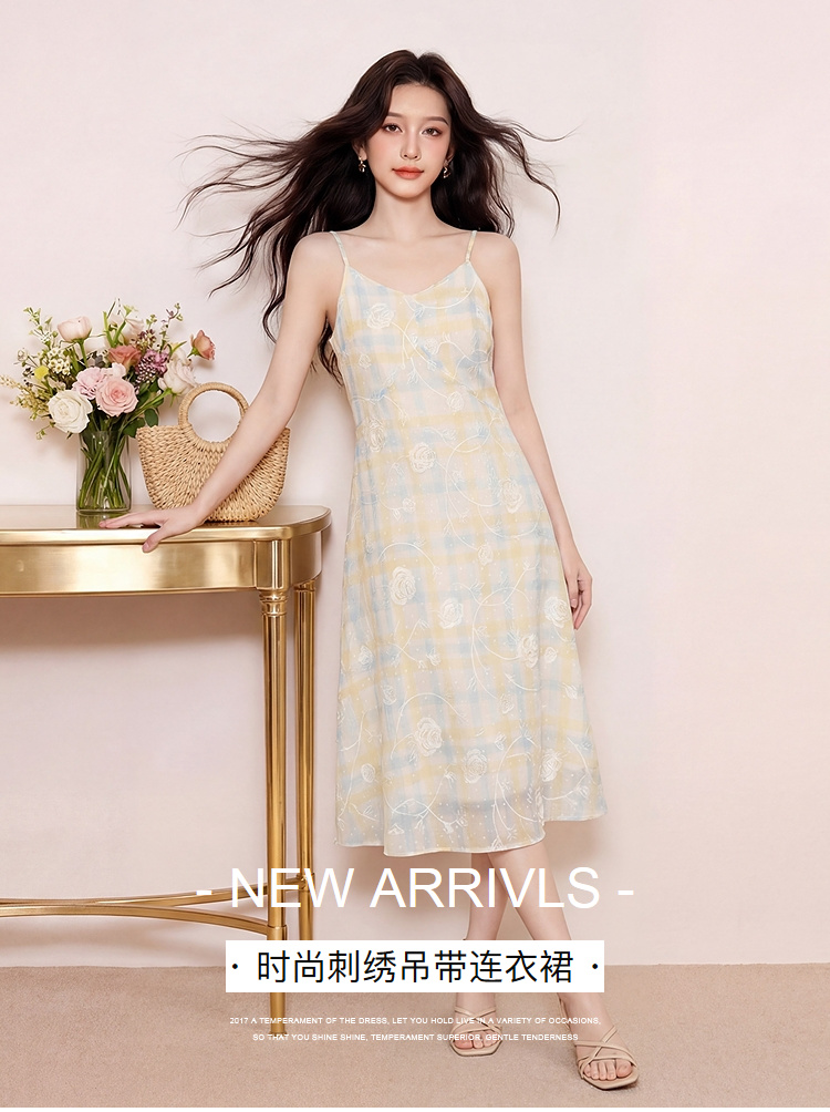 奢姿大码女装2026夏季胖妹妹时尚格纹刺绣吊带连衣裙气质减龄长裙9962836007B