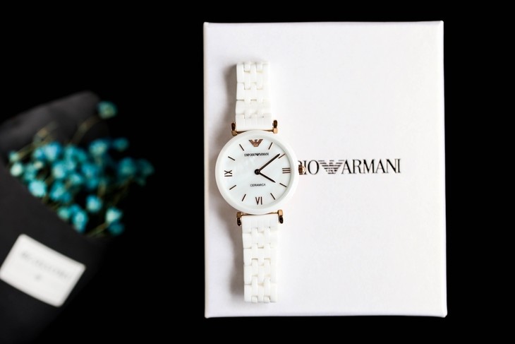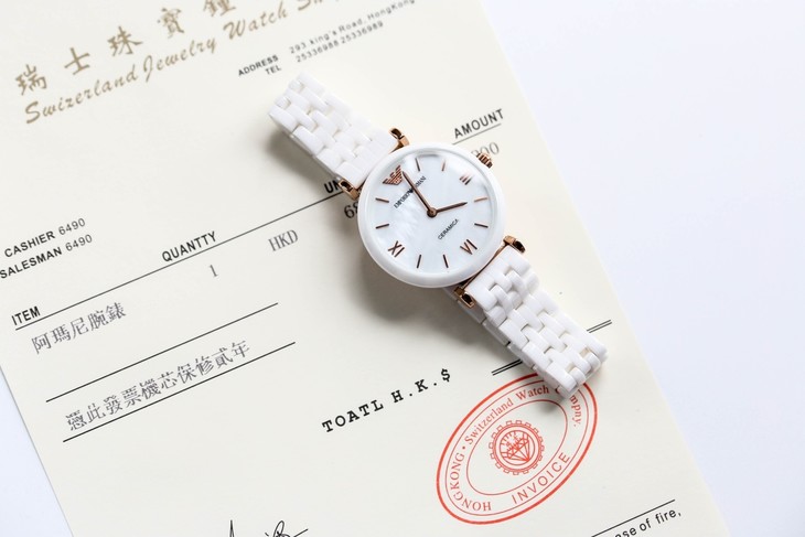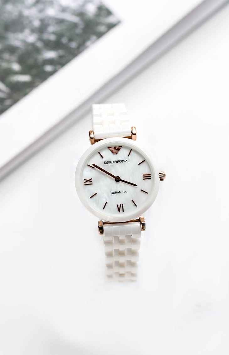 原装Emporio Armani 阿玛尼白色陶瓷女表 时尚靓丽石英表、