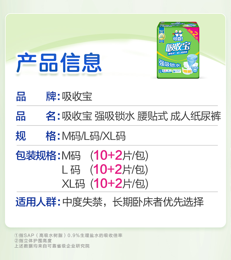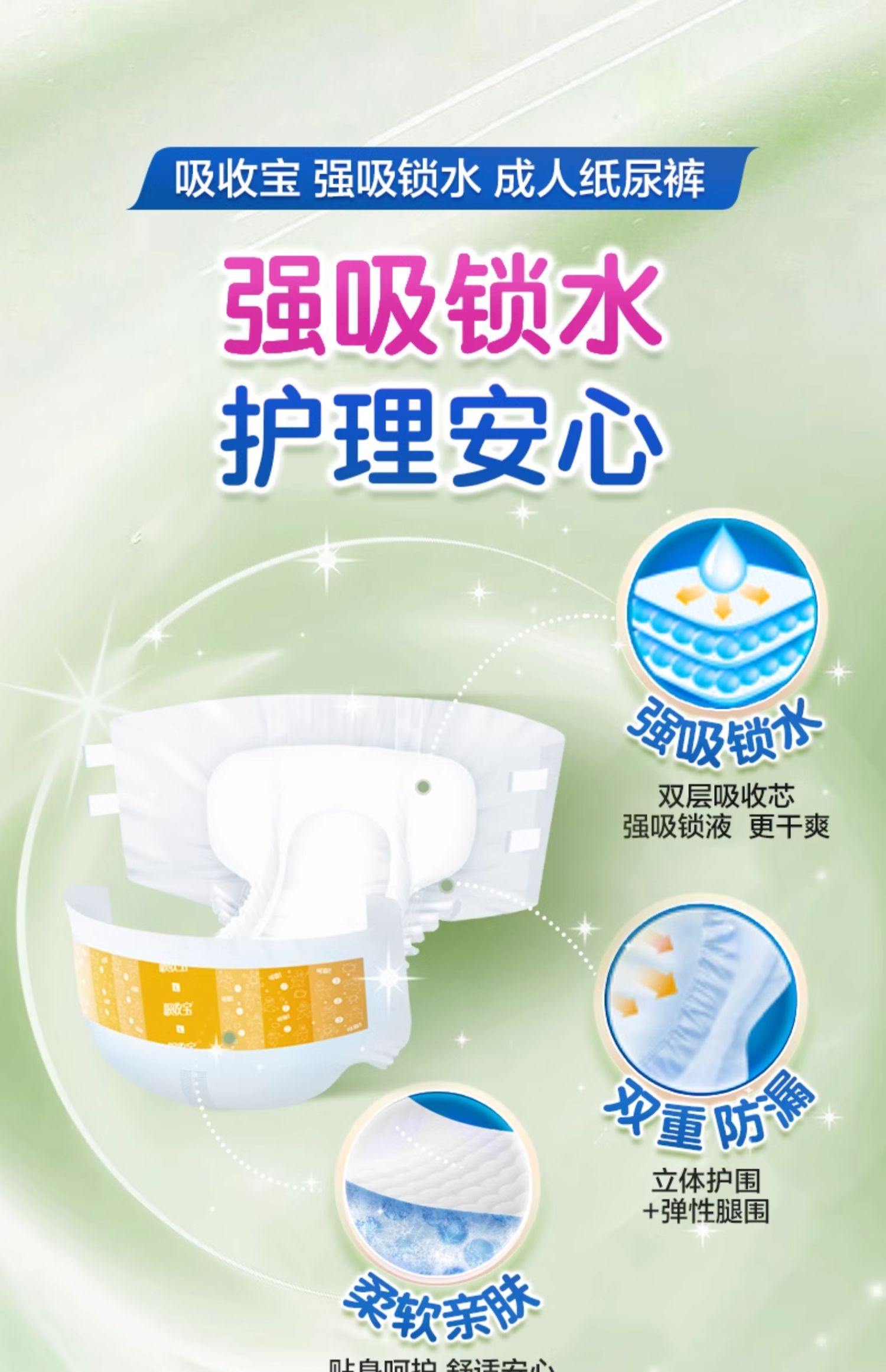 【吸收宝强吸锁水成人纸尿裤 整箱】腰贴式成人纸尿裤M/L/XL 72片