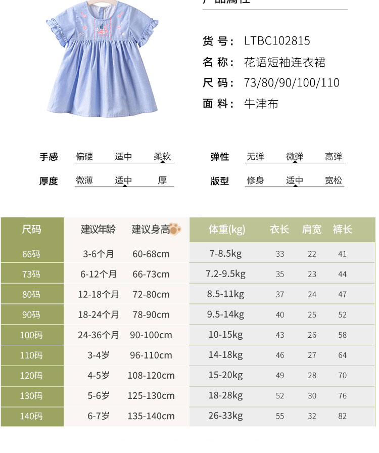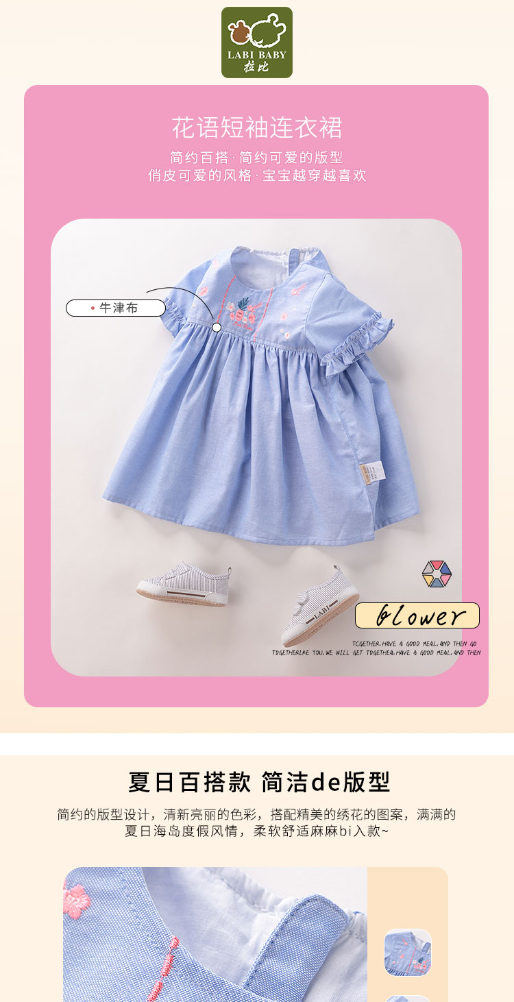 拉比-童衣类(夏)D0花语短袖连衣裙天蓝