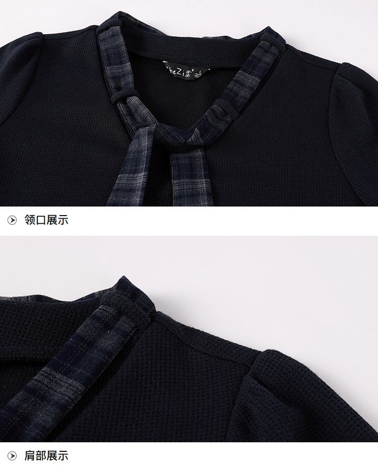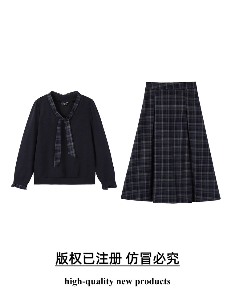 奢姿大码女装2025秋季减龄蝴蝶结格纹两件套胖妹妹V领时尚套装9953994372